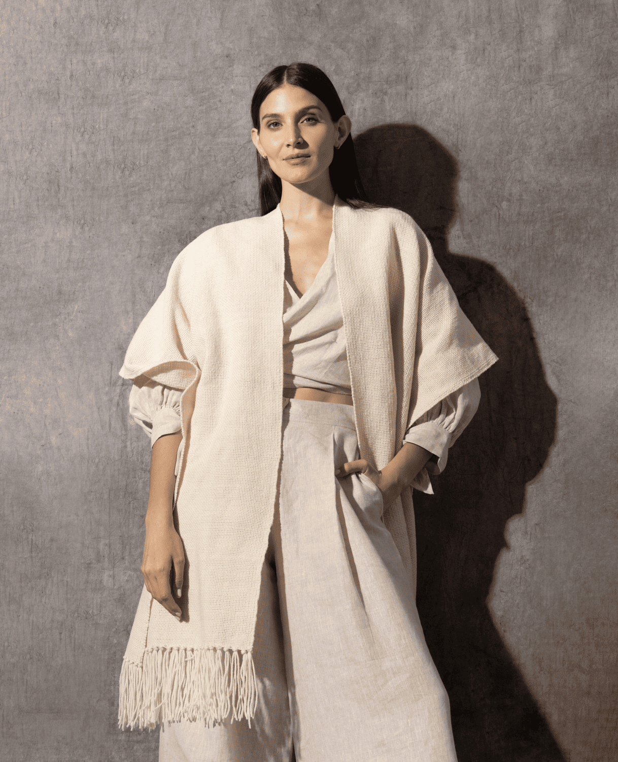 Ceferina is an Argentine brand of sustainable fashion and home décor that began fifteen years ago. Its founder and director, Andrea Ciorciari, was originally a certified public accountant. In search of new horizons, she created Ceferina with the aim of revaluing the traditional poncho and pure wool textiles of Argentina. She started working with a small group of weavers in Entre Ríos. Today, more than 50 artisans from across the country —including Entre Ríos, Buenos Aires, and northern provinces— collaborate with her. All of them work with pure wool yarn, including merino, and in many cases, they hand-spin the wool in rural areas.