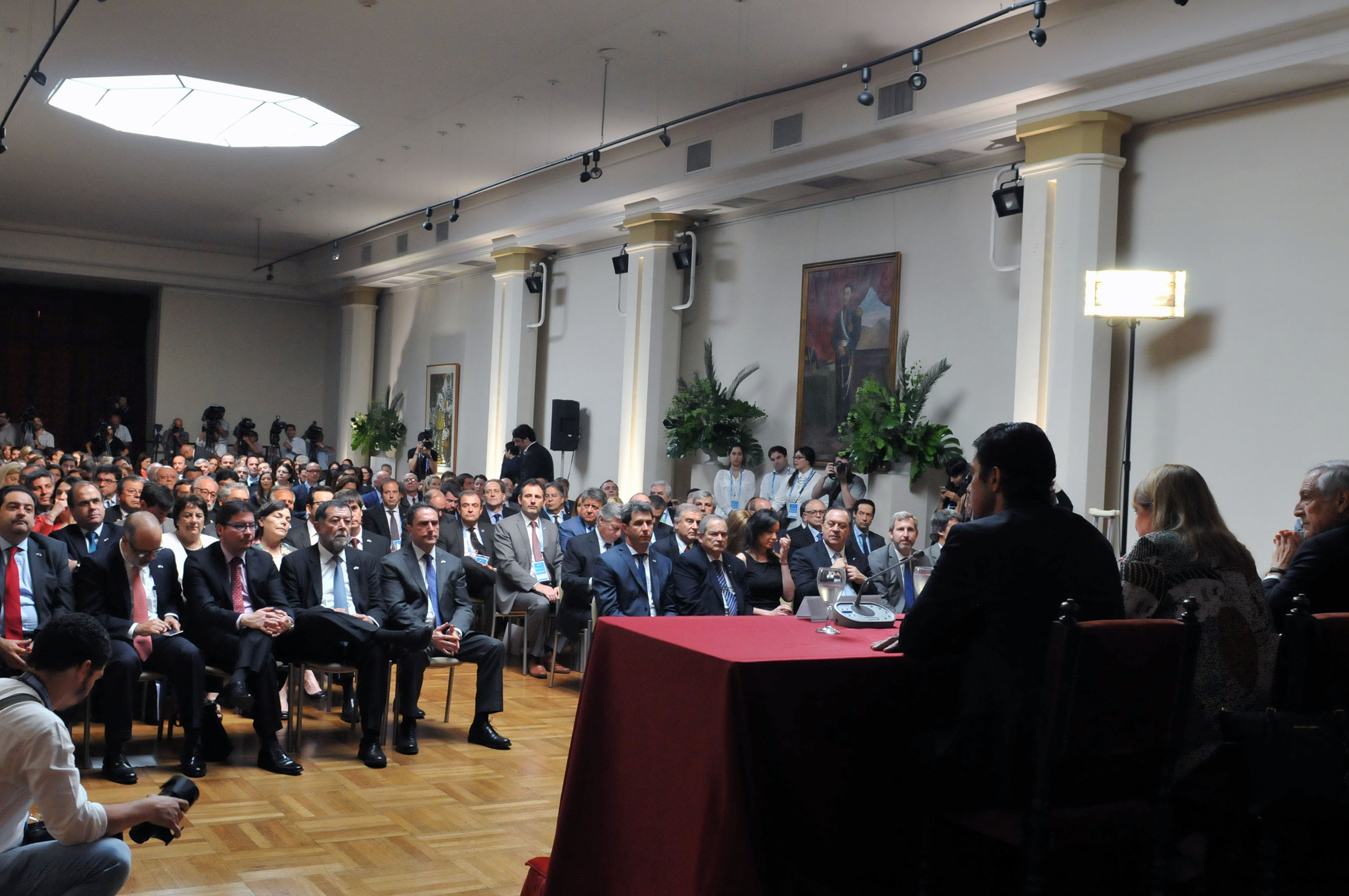 Foreign Minister Susana Malcorra and her Chilean counterpart, Heraldo Muñoz, during the opening of the 8th Binational Meeting of Argentine and Chilean Ministers. Photo credit: Roberto Daniel Garagiola