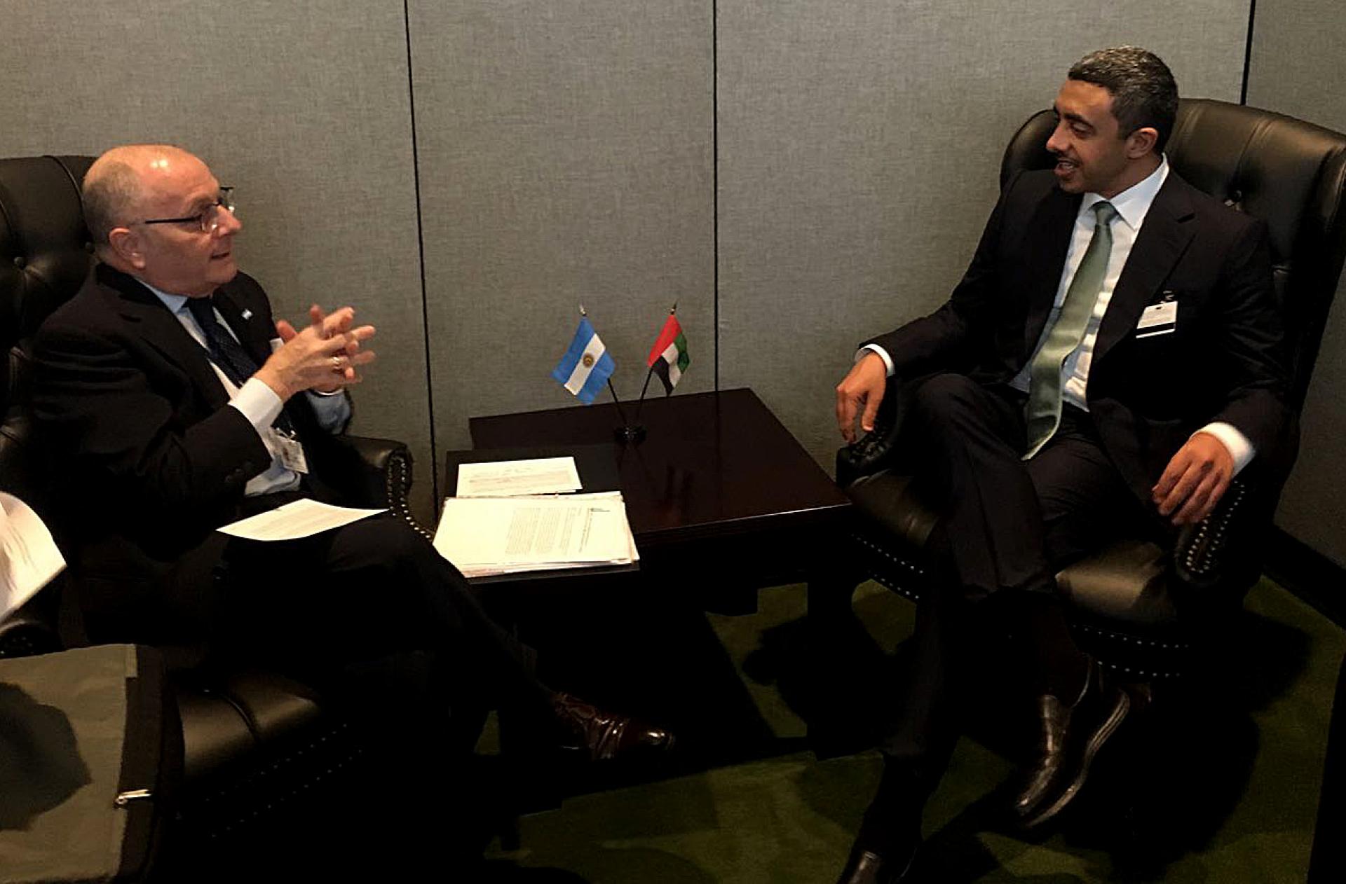 En el marco de la 72° Asamblea General de las Naciones Unidas celebrada en la ciudad de Nueva York, el canciller Jorge Faurie se reunió con el Ministro de Asuntos Exteriores y Cooperación de Emiratos Árabes Unidos (EAU), Jeque Abdullah Bin Zayed Al Nahyan.