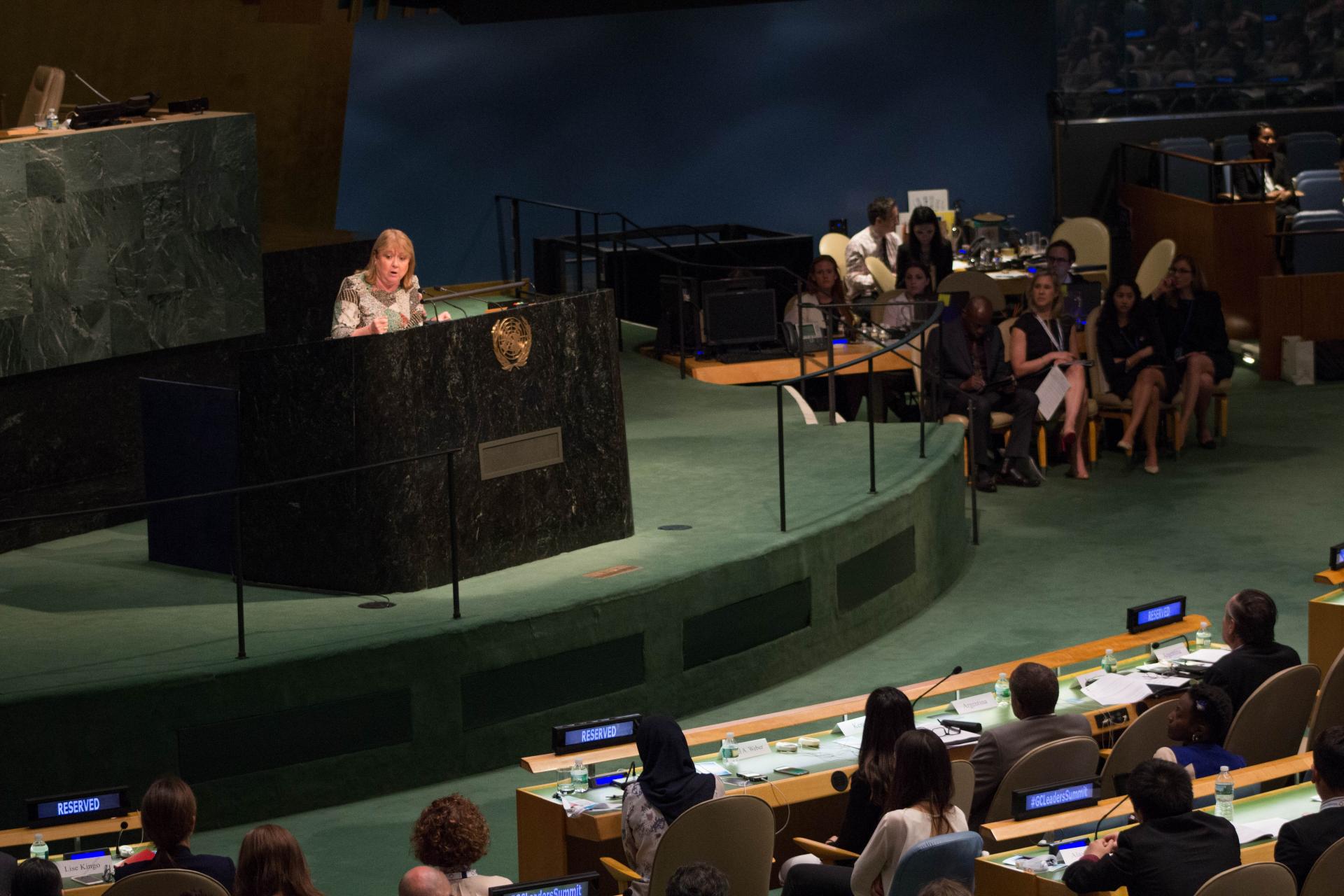 La canciller Susana Malcorra participó hoy en la ONU, ciudad de Nueva York, de la reunión del Pacto Global de Líderes Mundiales, donde expuso sobre la prioridad del gobierno argentino en la lucha contra la pobreza. “Hace falta inversión estatal y un sector privado que mire hacia el futuro, pensando en el pacto que firmamos en la ONU sobre la Agenda 2030 para el Desarrollo Sostenible”, señaló Malcorra, a la vez que destacó: “Se necesita de la pasión y la energía de los jóvenes que miran hacia adelante con vistas a cumplir los objetivos de esa Agenda global”.