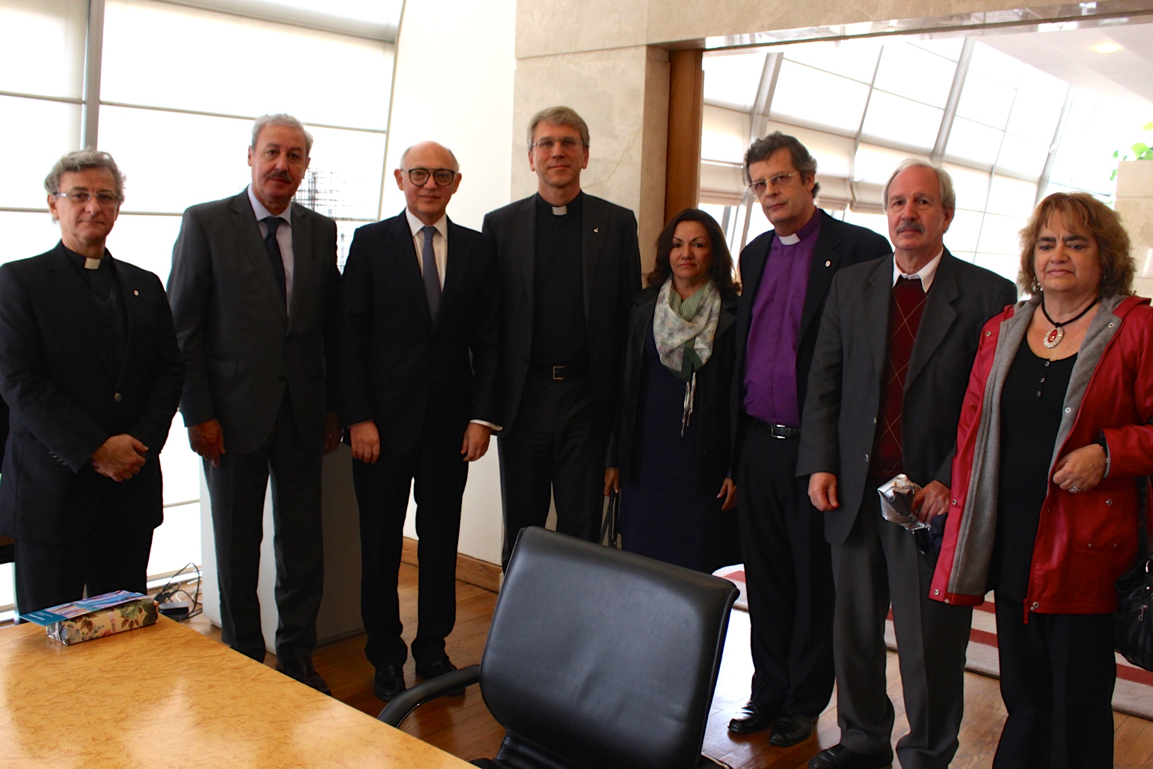 El Canciller argentino Héctor Timerman recibió hoy al Dr. Olav Fykse Tveit, Secretario General del Consejo Mundial de Iglesias (CMI). Del encuentro participó el Secretario de Culto de la Nación, Guillermo Oliveri.