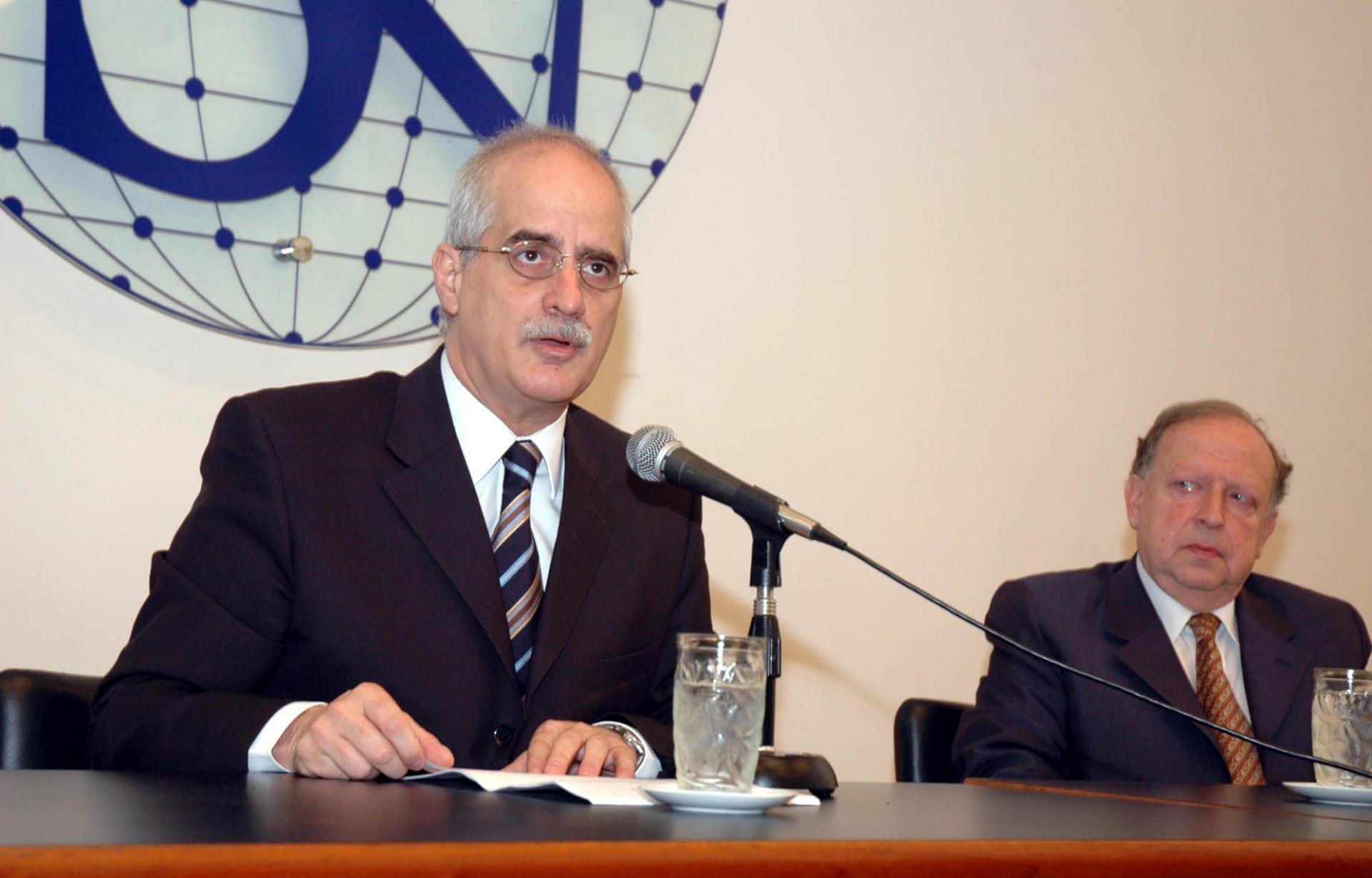 Baires Dic.6 de 2006 - El Canciller Jorge Taiana y el Director del Instituto de Servicio Exterior emb. Horacio Basave durante la ceremonia de fin de curso de una nueva promoción de diplomáticos