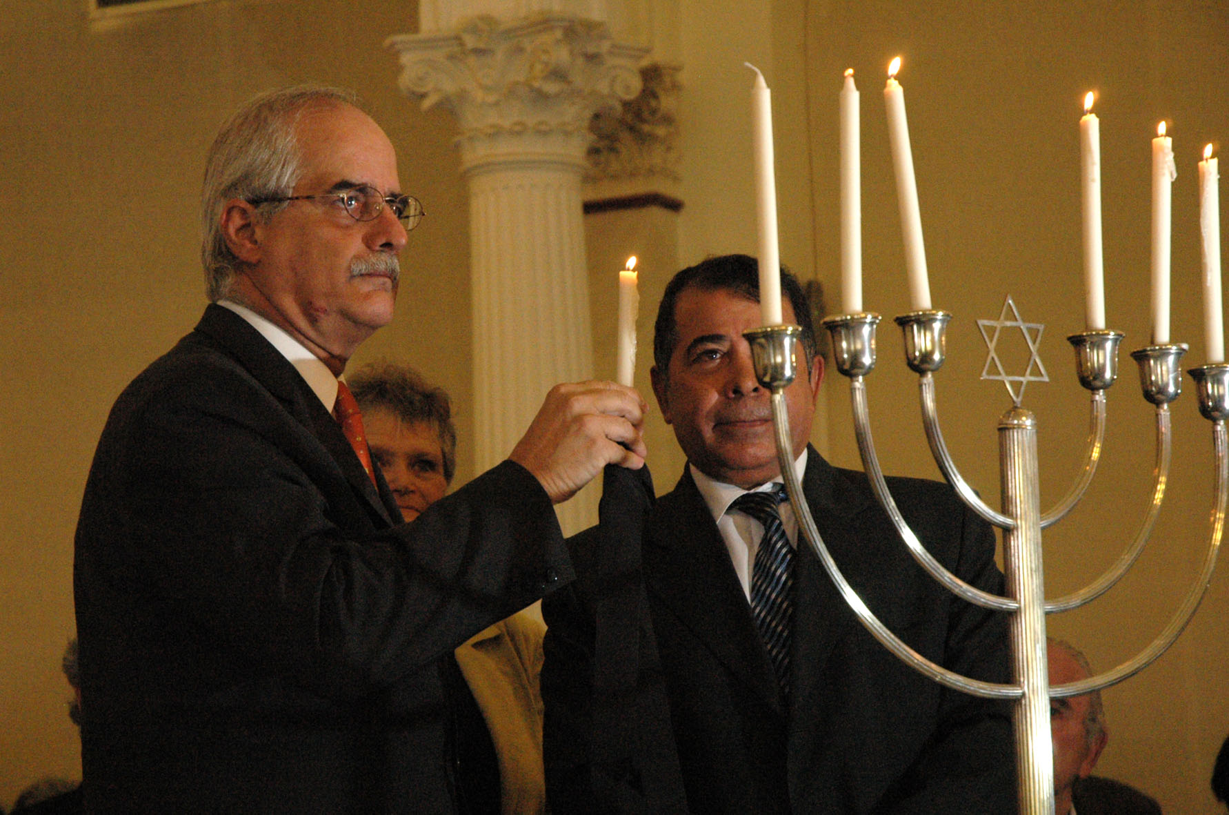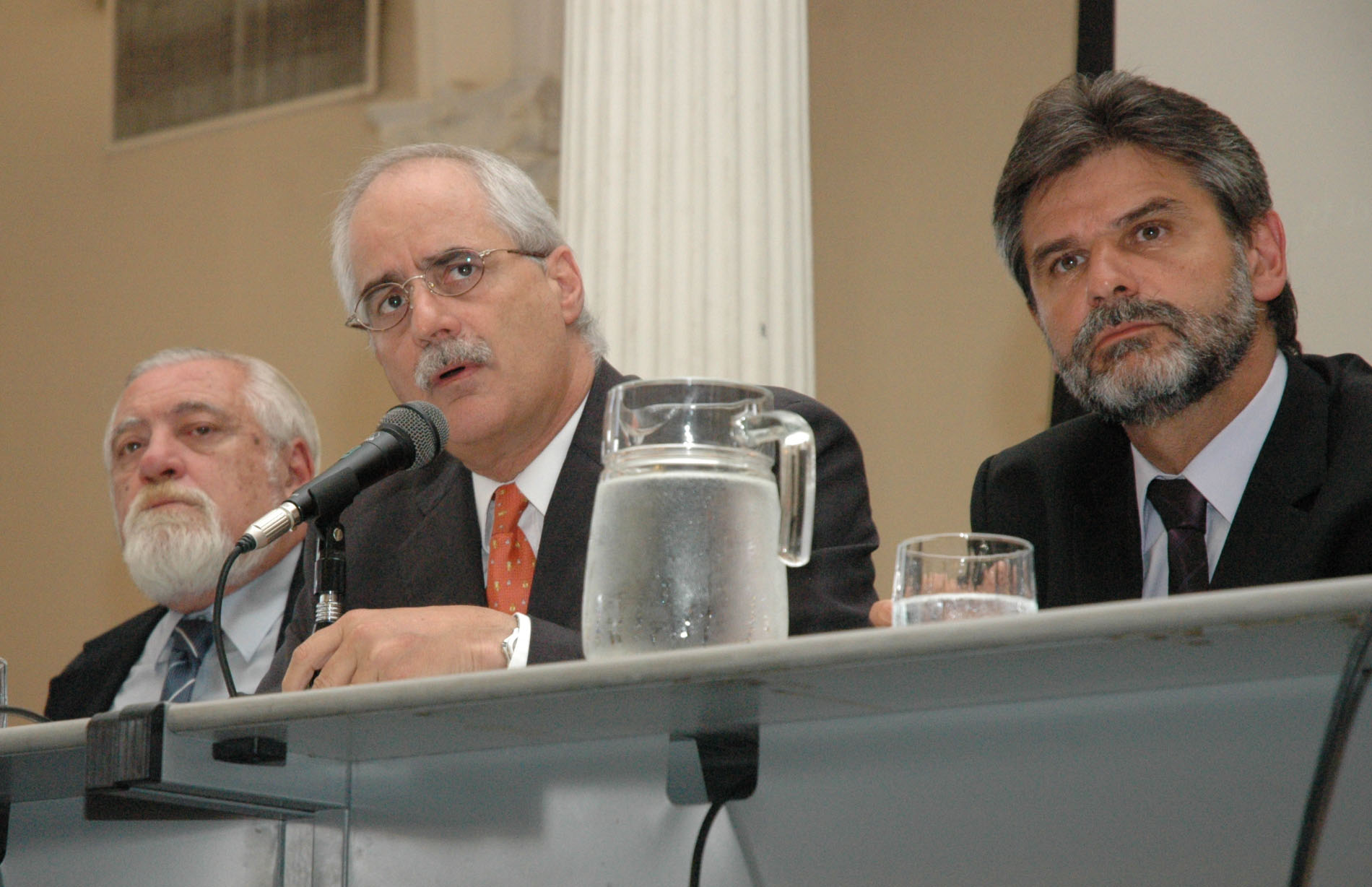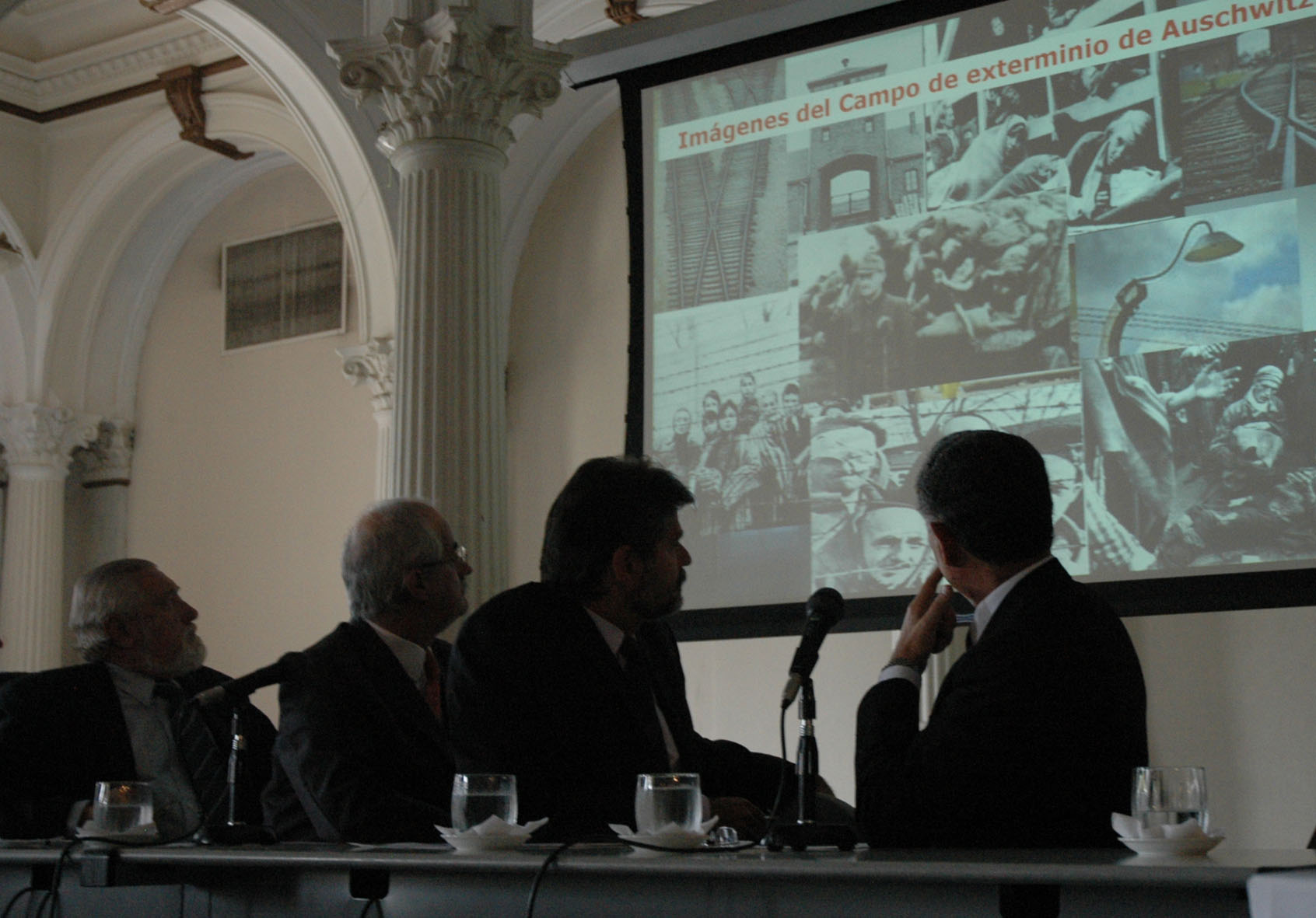 baires Enero 25 de 2007 El Canciller Jorge Taiana, el Ministro de Educación Daniel Filmus, El Sec. de Culto Guillermo Olivieri, el Sec de Derechos Humanos Eduardo Duhalde y autoridades de AMIA y Daia durante el recordatorio por el Holocausto en el Palacio