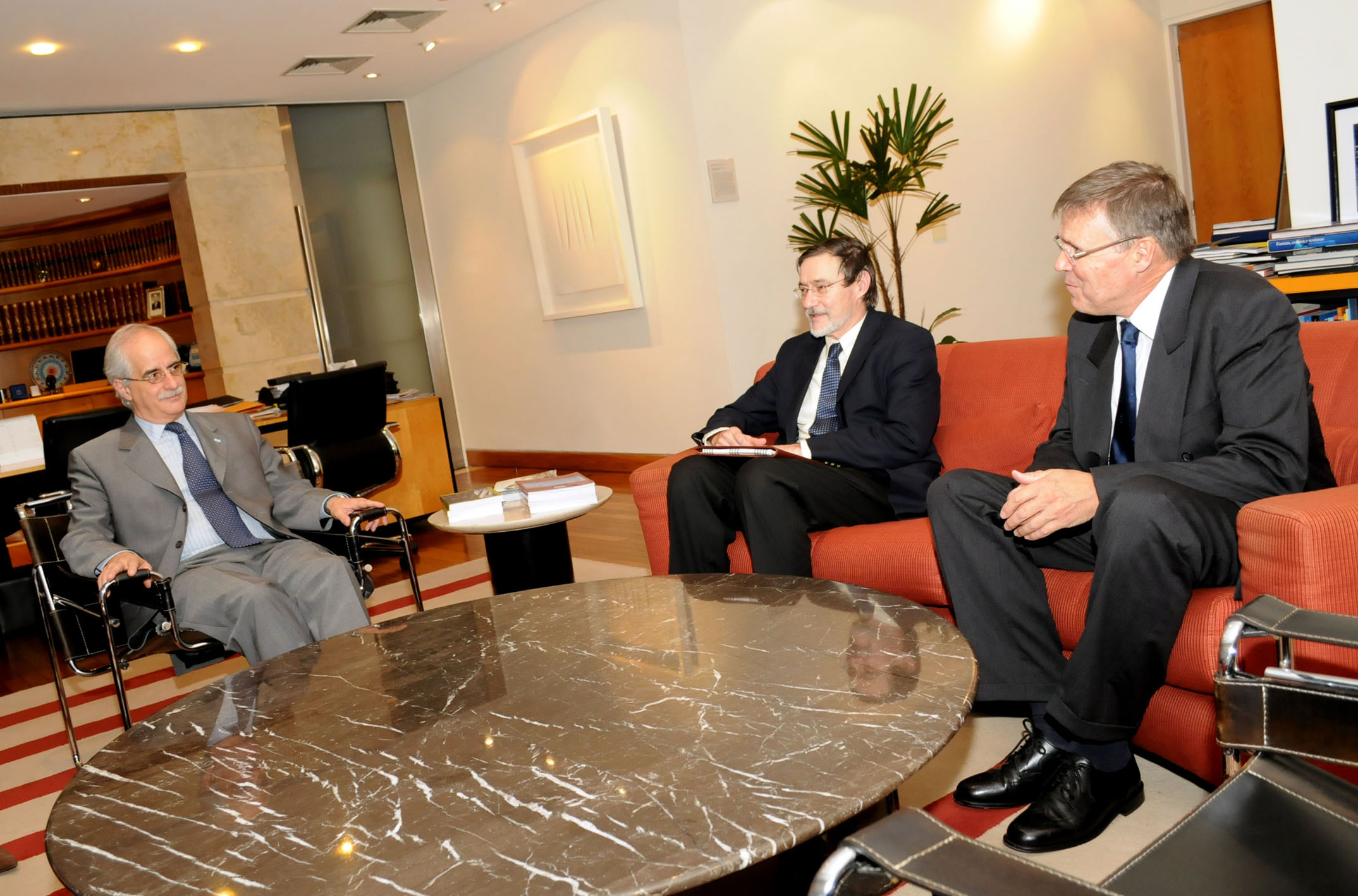 Buenos Aires Agosto 14 de 2009. El Canciller Jorge Taiana recibió hoy en su despacho alos Secretarios Ejecutivos saliente y entrante de la Secretaría del Tratado Antártico, señores Johannes Huber y Manfred Reinke. foto: Roberto Daniel Garagiola