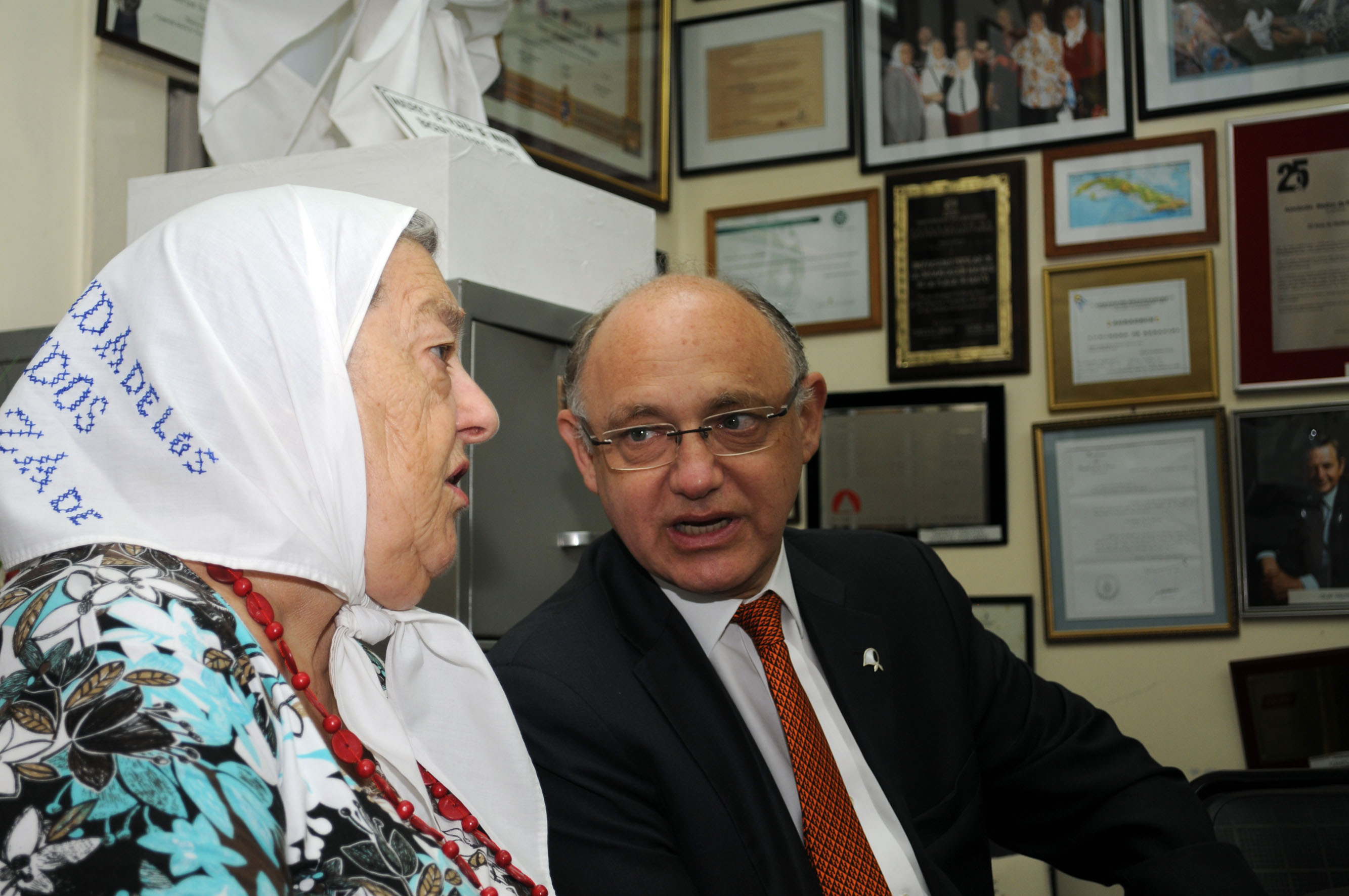 Buenos Aires, Enero 6 de 2010. El Canciller Héctor Timerman y la titular de Madres de Plaza de Mayo, Hebe de Bonafini, firmaron un acuerdo de cooperación institucional para difundir en el exterior el programa de inclusión social "Sueños Compartidos" foto