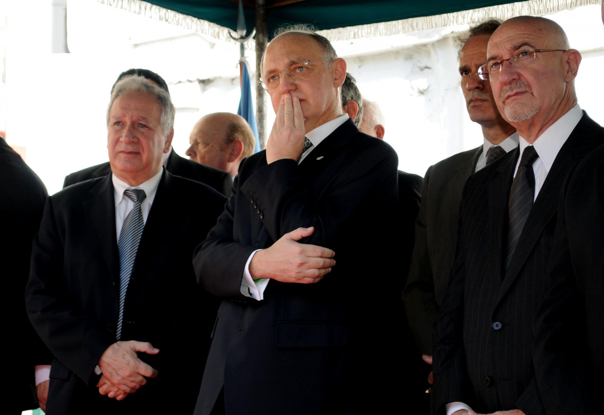 Buenos Aires, Marzo 17 de 2011. El Canciller Héctor Timerman asistió junto al embajador de Israel, Daniel Gazit al acto recordatorio en memoria de las víctimas del atentado a la embajada de Israel, hace 19 años en ese mismo lugar. foto Roberto Daniel Gara