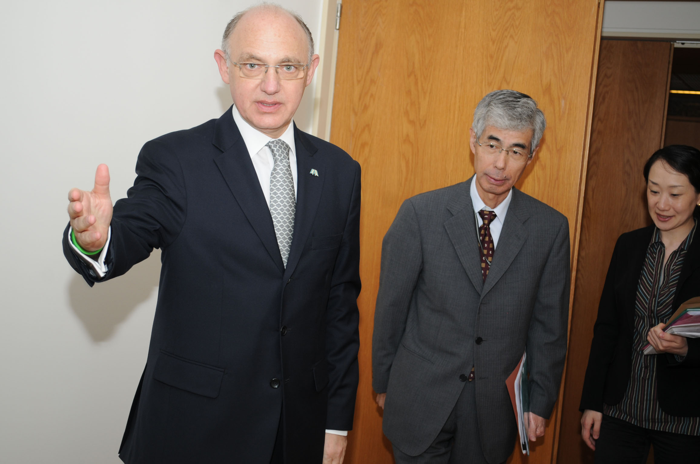Buenos Aires, Marzo 17 de 2011.El Canciller Héctor Timerman, recibió esta tarde en su despacho al embajador de Japón, Hitohiro Ishida, quien agradeció la solidaridad argentina en este difícil momento que vive su país.foto Roberto Daniel Garagiola