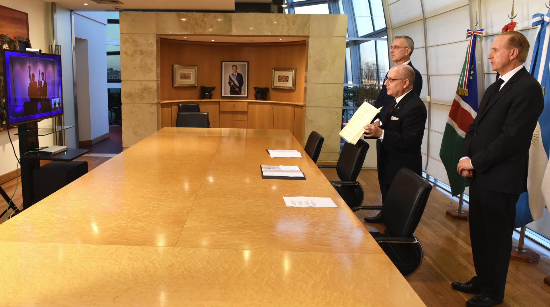 Los embajadores de Trinidad y Tobago, Chipre, Namibia y Nepal ante la República Argentina y concurrentes desde Brasil, presentaron ayer por la tarde, por primera vez mediante una videoconferencia, las Copias de Cartas Credenciales al canciller Jorge Faurie.