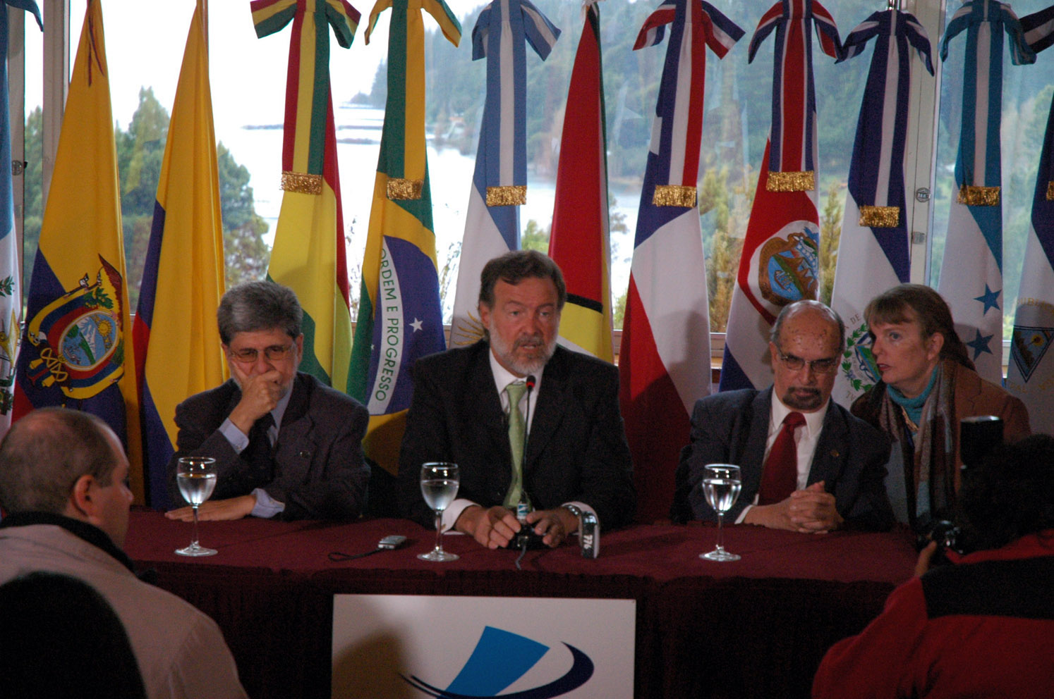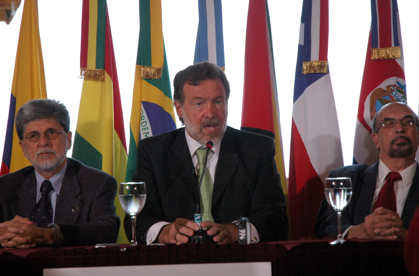 Conferencia de prensa del Canciller Bielsa y su par de Brasil Celso Amorin y de Guayana Samuel Insanally