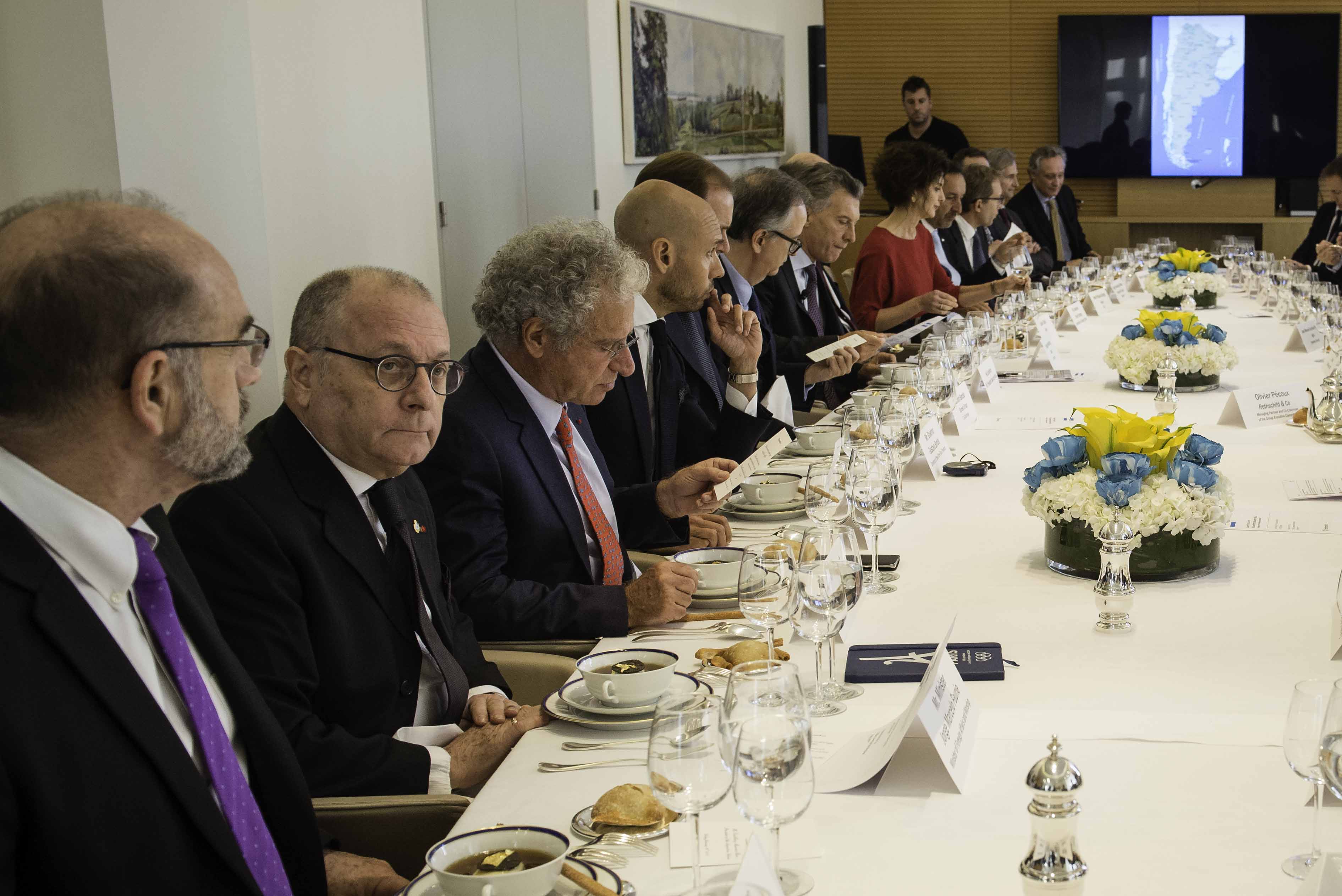 El Canciller Jorge Faurie participó en París de un desayuno de trabajo encabezado por el Presidente Mauricio Macri con casi un centenar de empresarios agrupados en el Movimiento de Empresas de Francia (MEDEF). Luego, la comitiva fue recibida en la sede del Grupo Rothschild donde funcionarios argentinos y empresarios franceses participaron de un almuerzo de trabajo. El Presidente Macri subrayó “la potencialidad que tiene la Argentina” y destacó que el Gobierno “ordenó la economía e hizo grandes avances con el apoyo de la gente y de la oposición”. A su vez, el titular del MEDEF Internacional, Frédéric Sanchez, felicitó al Macri “por los cambios realizados y las metas puestas en reducir la pobreza y bajar la inflación”.