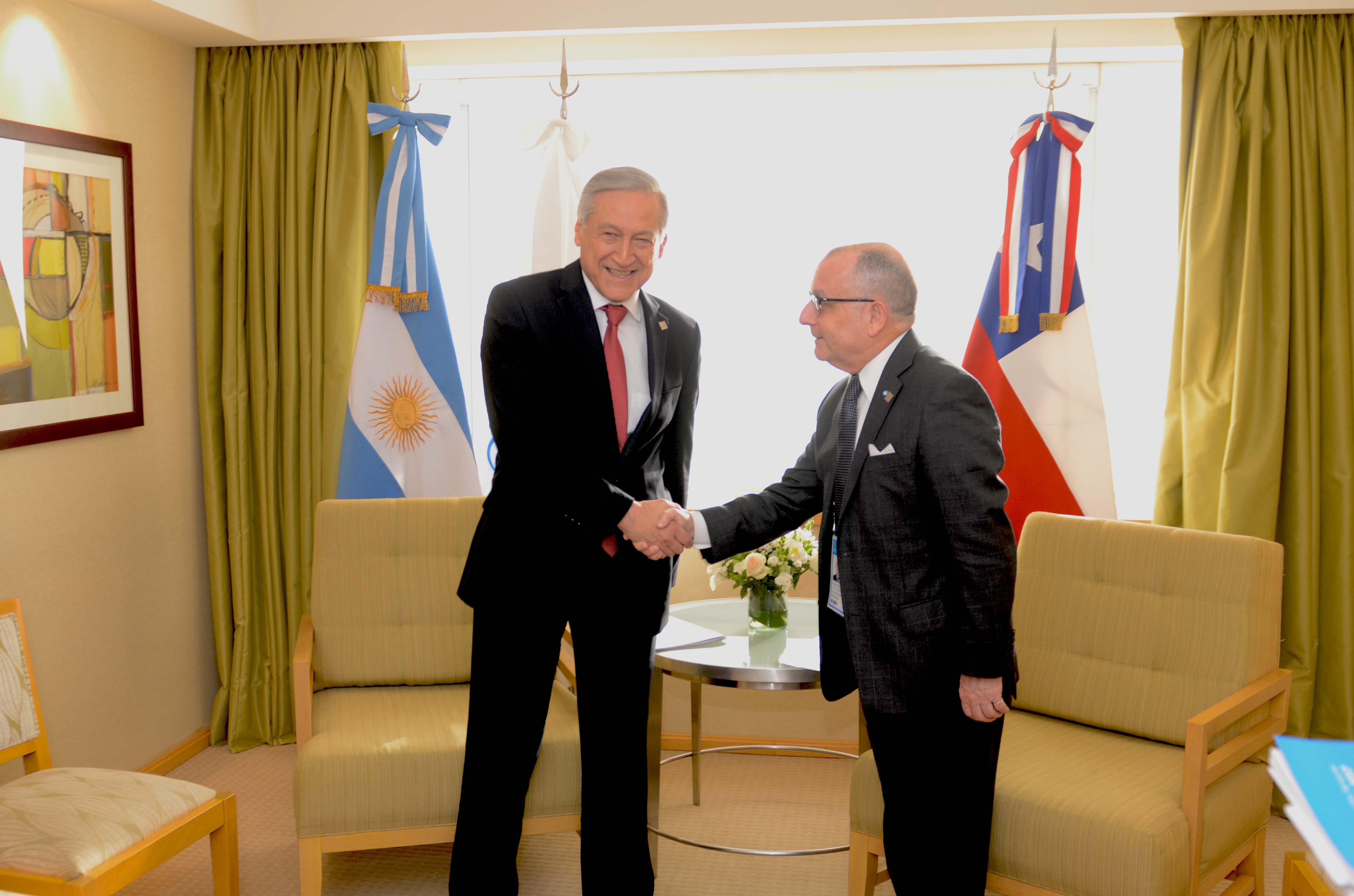 El Canciller Jorge Faurie recibió esta tarde en el Hotel Intercontinental de la ciudad de Mendoza a su par de la República de Chile, Heraldo Muñoz, en el marco de la Cumbre del Mercosur.