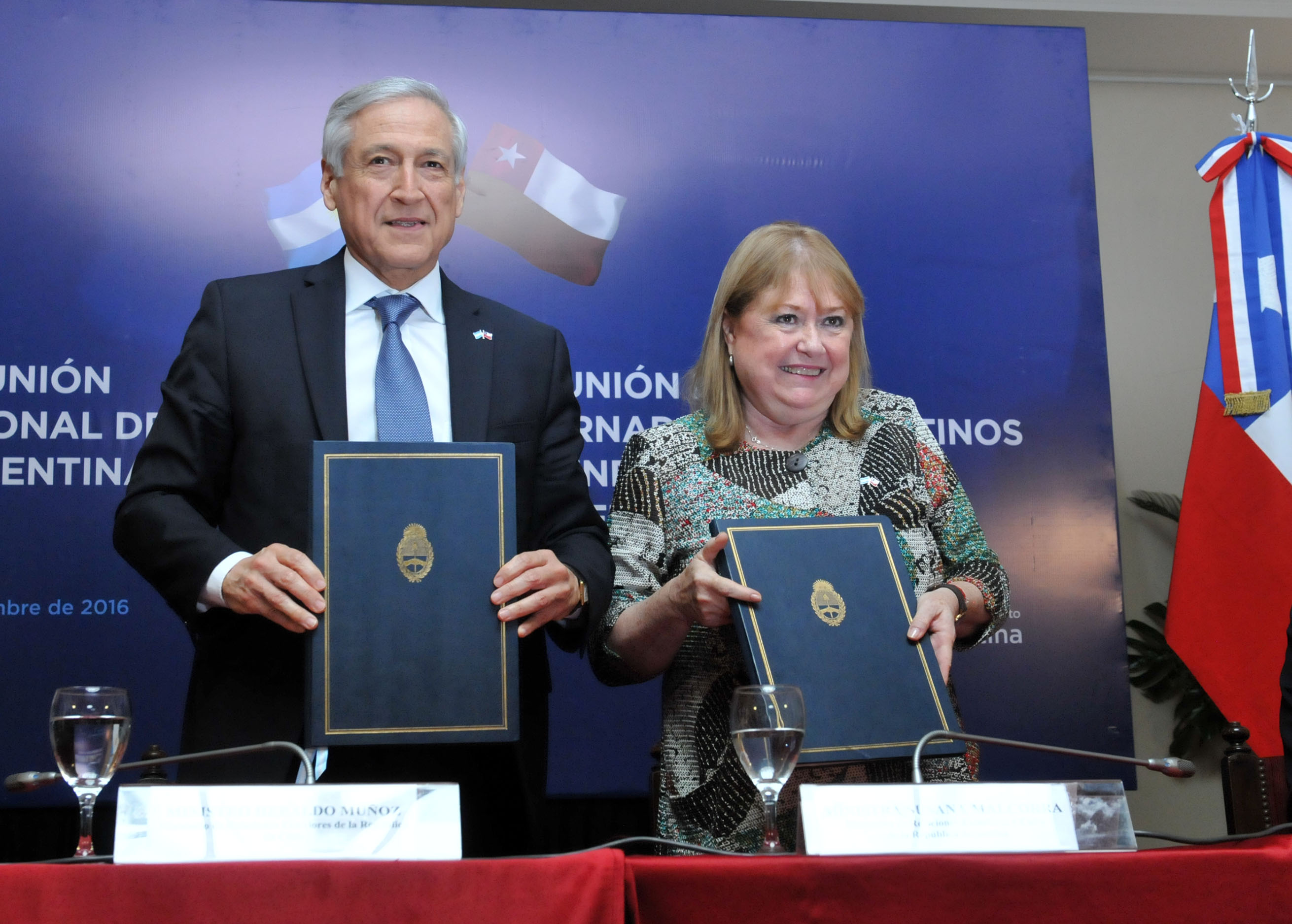 Viernes 16 Diciembre 2016Los cancilleres de Argentina y Chile, Susana Malcorra y Heraldo Muñoz, durante la firma de acuerdos bilaterales en el Palacio San Martín. foto Roberto Daniel GaragiolaGalería:
