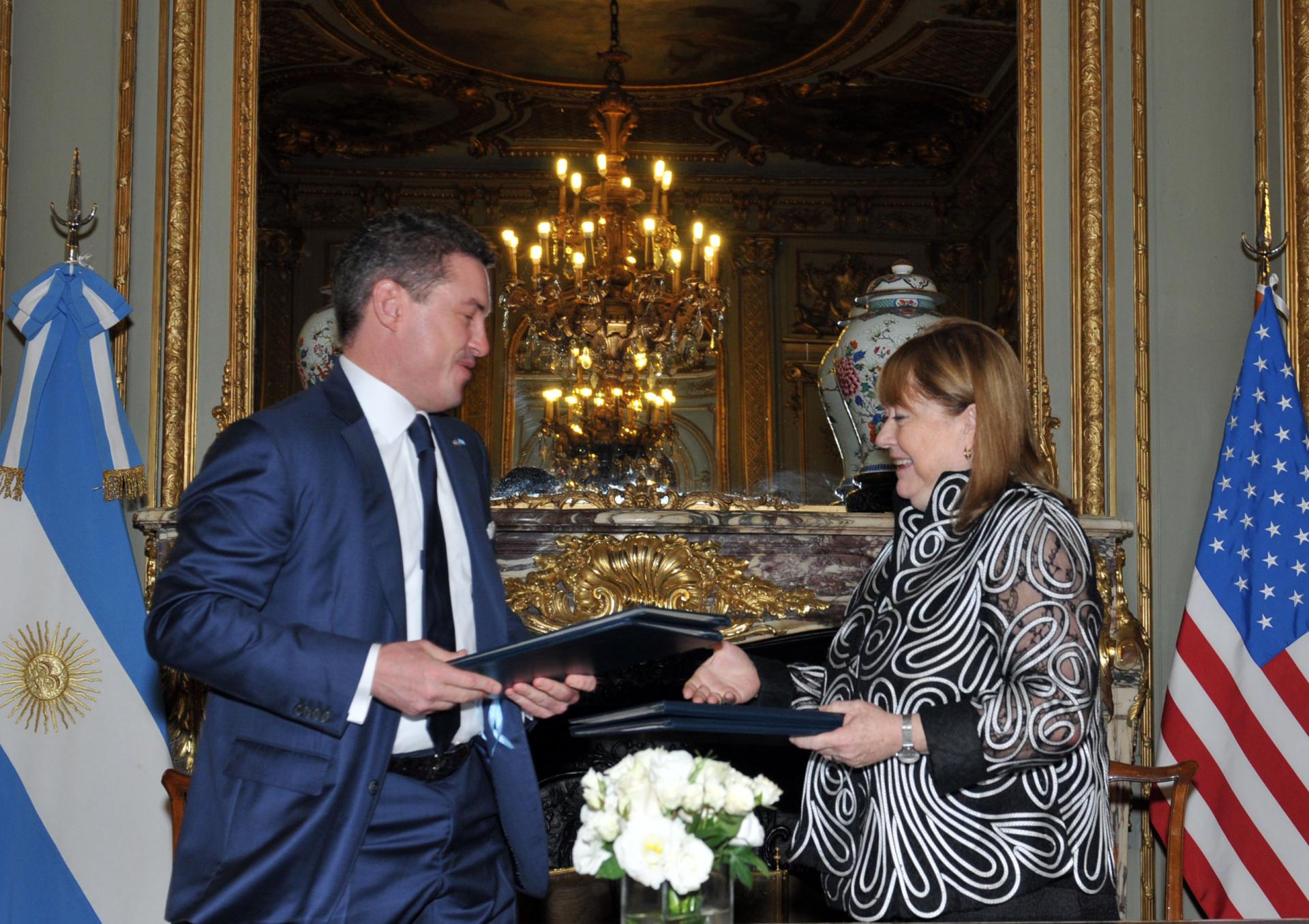Esta mañana en el palacio San Martín, en ocasión de la visita del presidente Barack Obama a la Argentina, la canciller Susana Malcorra y el embajador de los Estados Unidos Noah Mamet firmaron acuerdos bilaterales