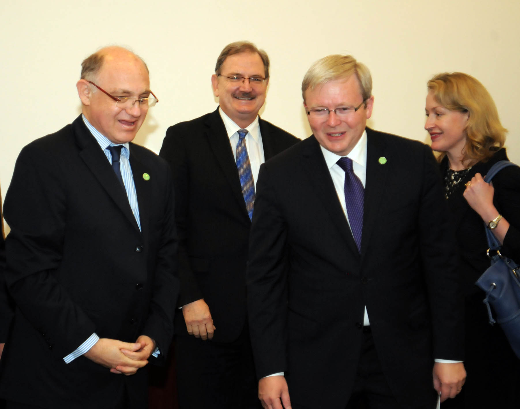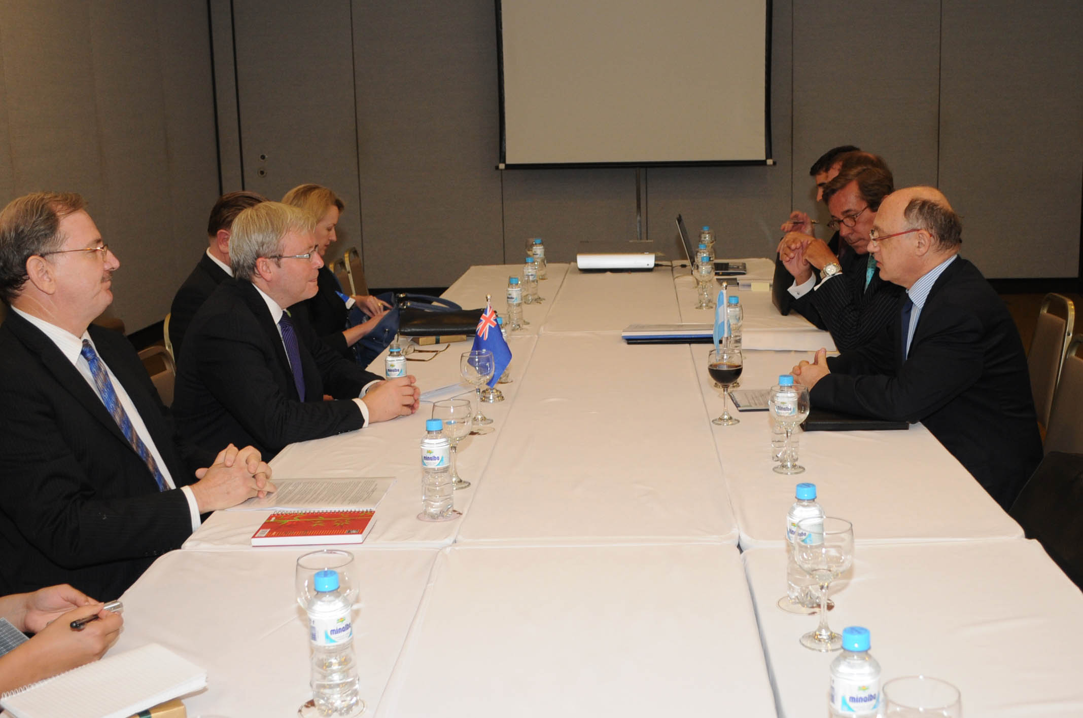 Foz do Iguazu, Diciembre 15 de 2010. En el Marco de la XL Cumbre de Jefes de Estado del Mercosur, el Canciller Héctor Timerman mantuvo reuniones bilaterales con el Ministro de Relaciones Exteriores de Australia Kevin Rudd y de Comercio Exterior del Rei