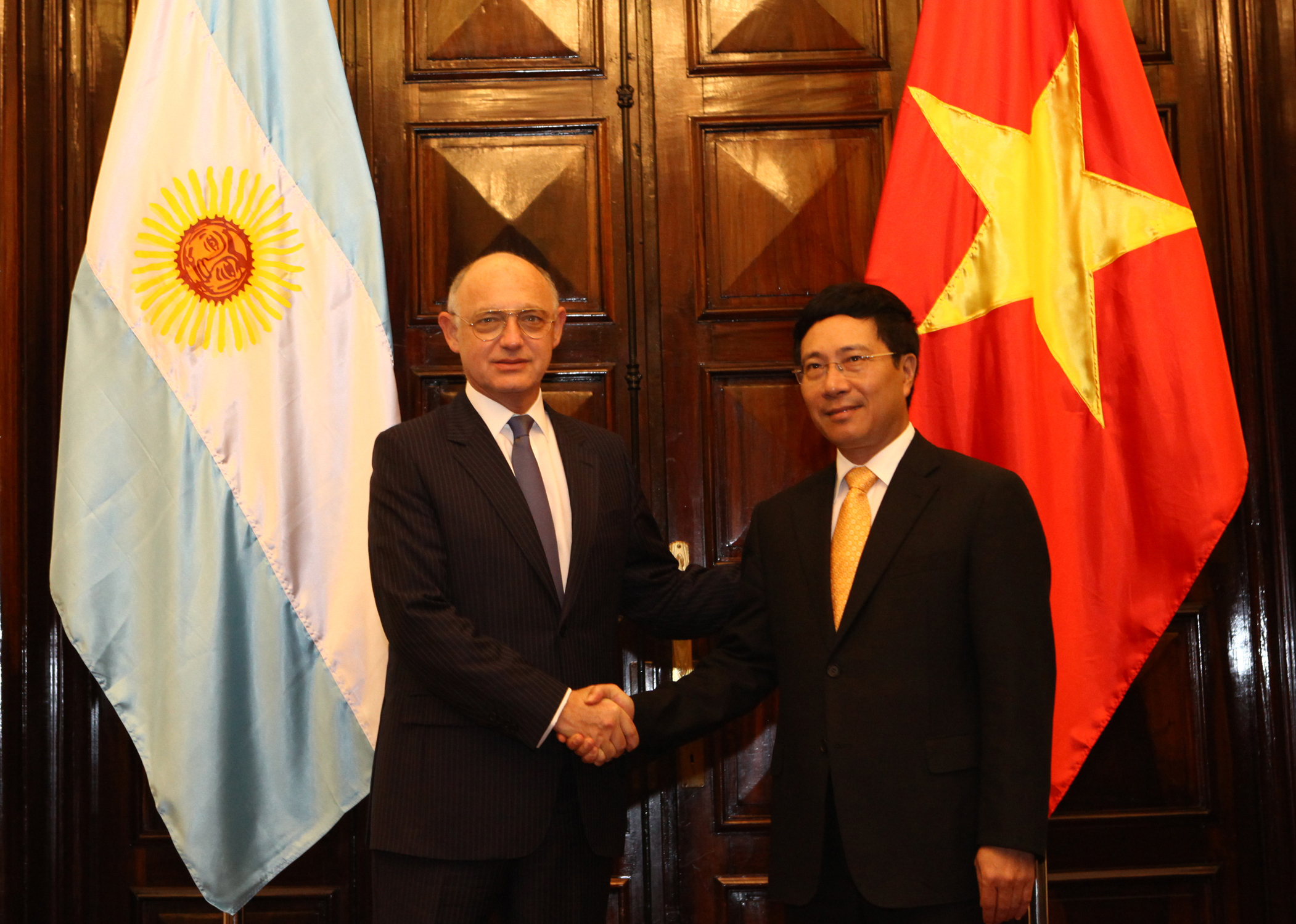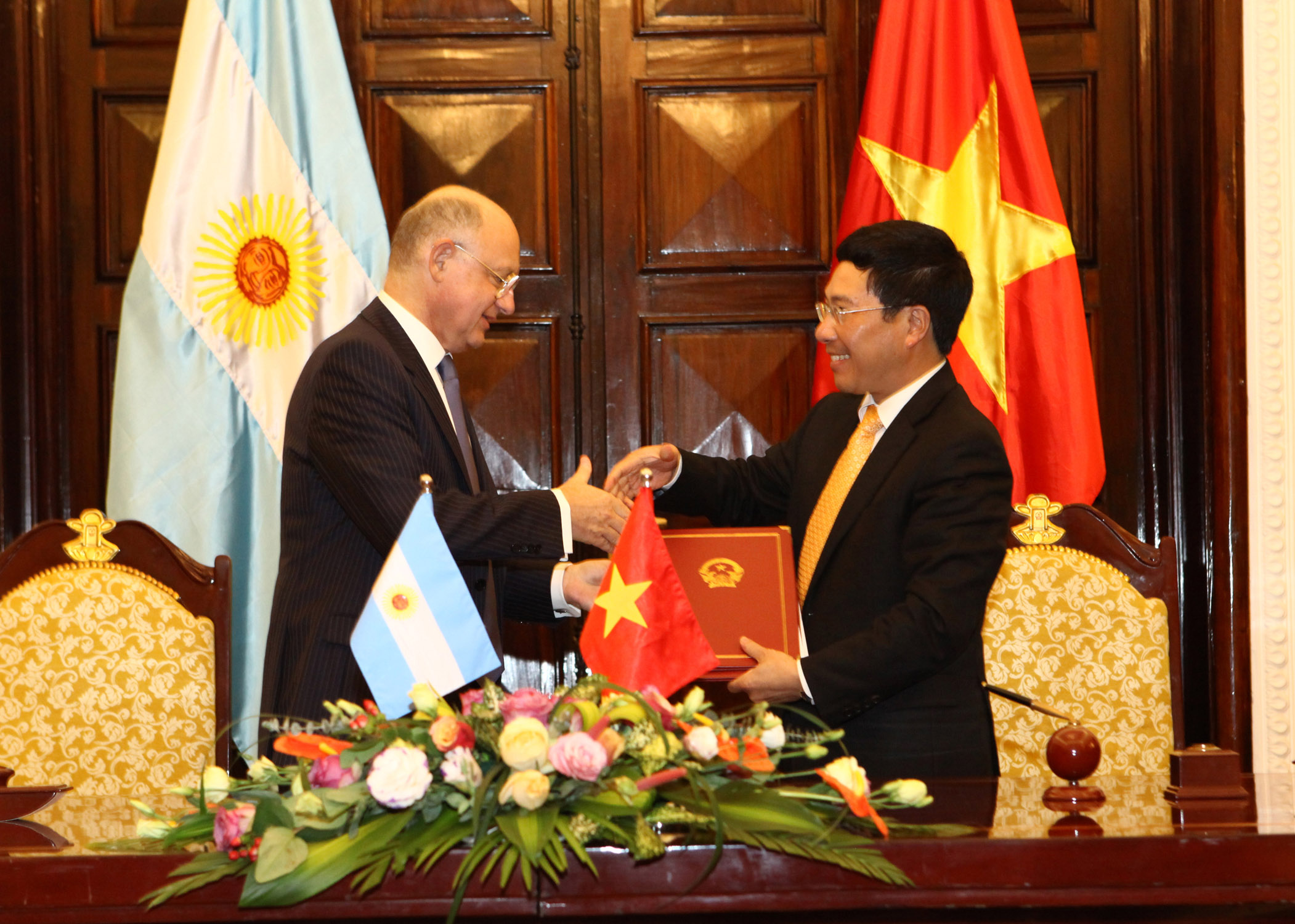 Hanoi, Vietnam. Marzo 23 de 2012. En el marco de la visita oficial que realiza a la República Socialista de Vietnam, el Canciller argentino, Héctor Timerman, se reunió hoy por la mañana con su homólogo Phan Bihn Minh. Posteriormente en Canciller Argenti
