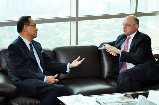 Indonesia Jakarta. Setiembre 11 de 2012. El Canciller Héctor Timerman abrió el encuentro que mantuvo hoy con un grupo de líderes empresarios nucleados Cámara de Comercio e Industria del país (KADIN), junto al presidente de la institución Suryo Sulisto