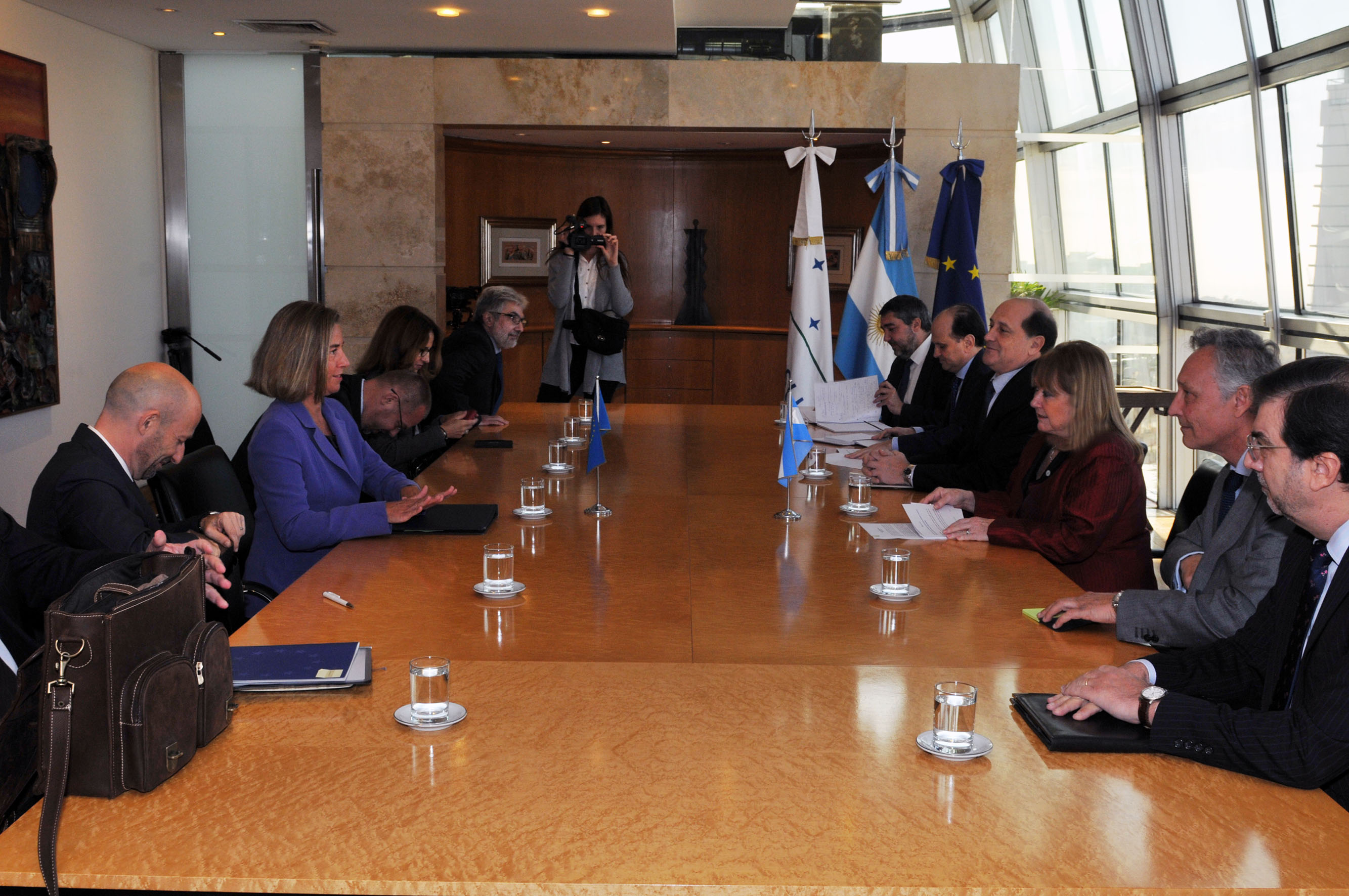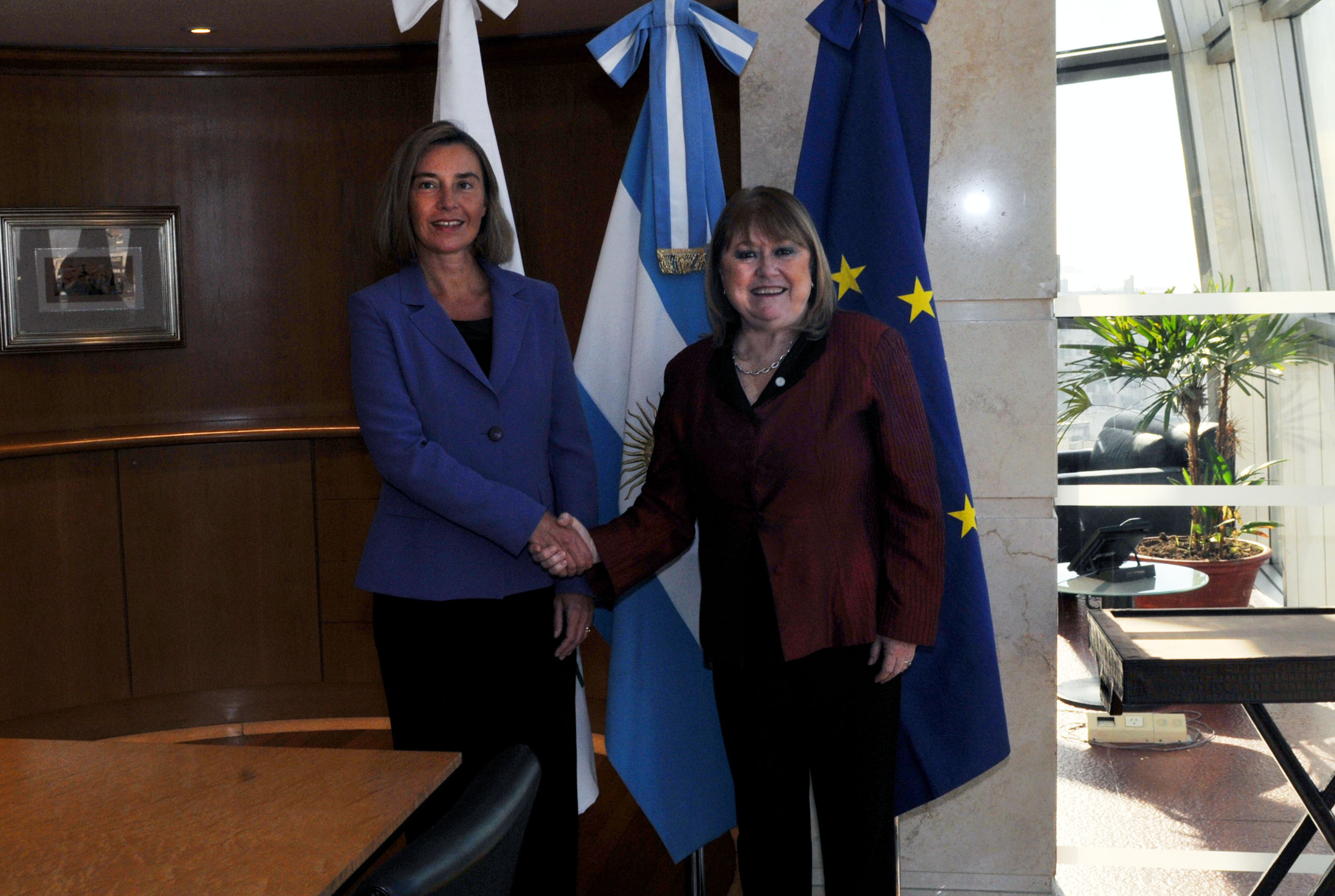 La Canciller Susana Malcorra recibió en su despacho a la Representante de la Unión Europea para Asuntos Exteriores y Política de Seguridad, Federica Mogherini. Entre otros temas trataron el avance de las negociaciones del acuerdo Mercosur-UE, la preparación de la 11° Conferencia Ministerial de la OMC y la reunión del G 20, que se realizará en Buenos Aires en 2018. foto Roberto Daniel Garagiola