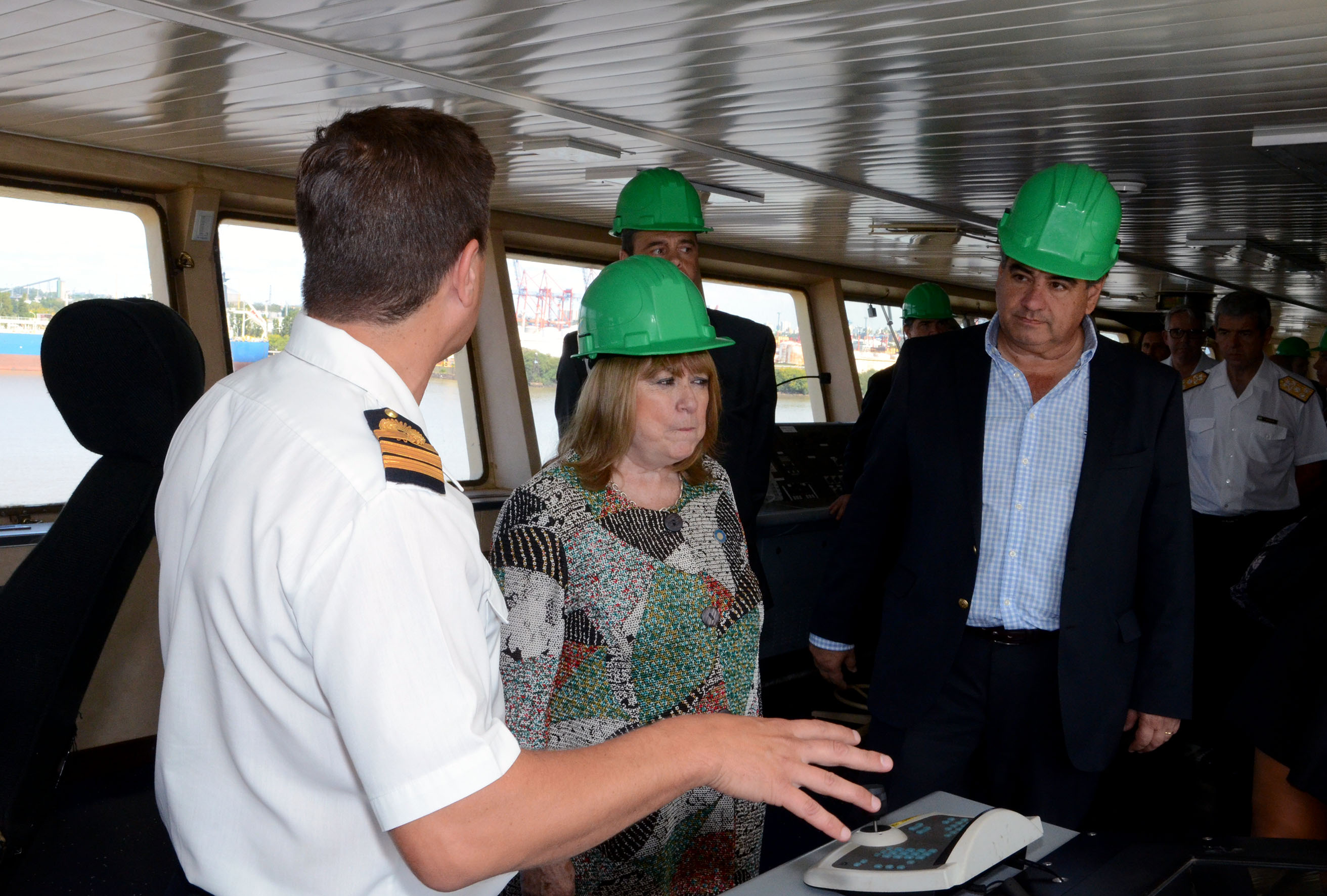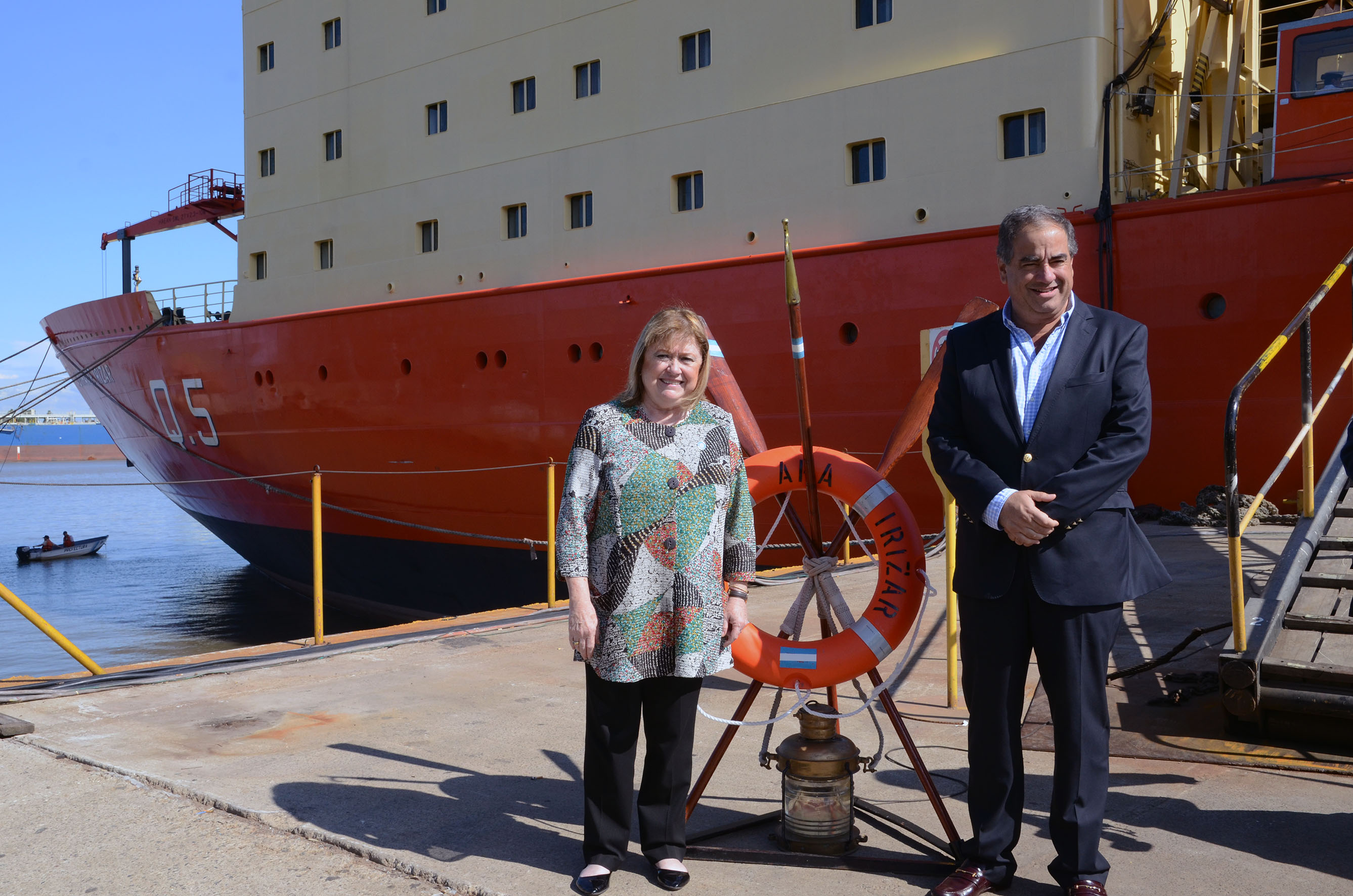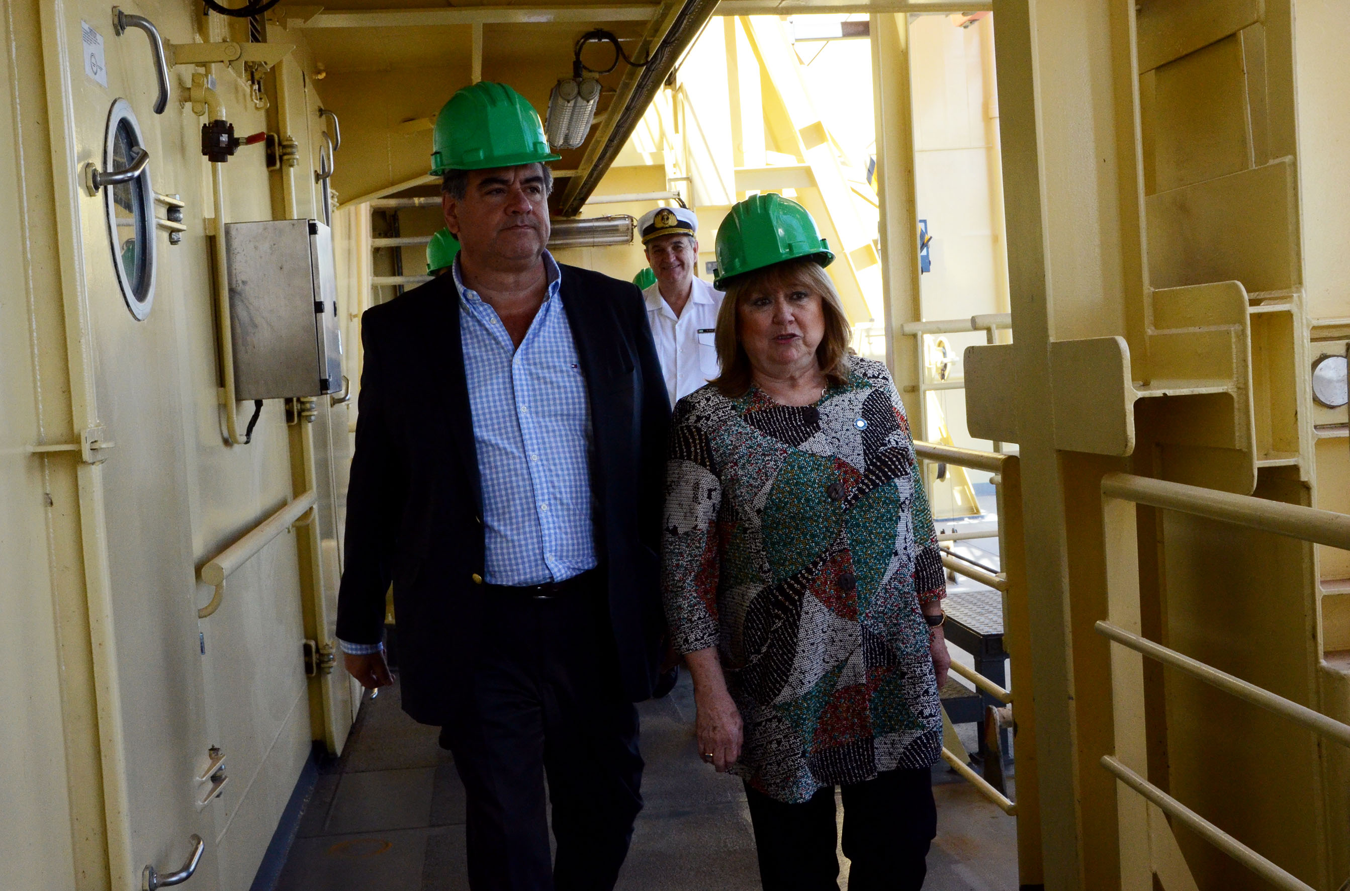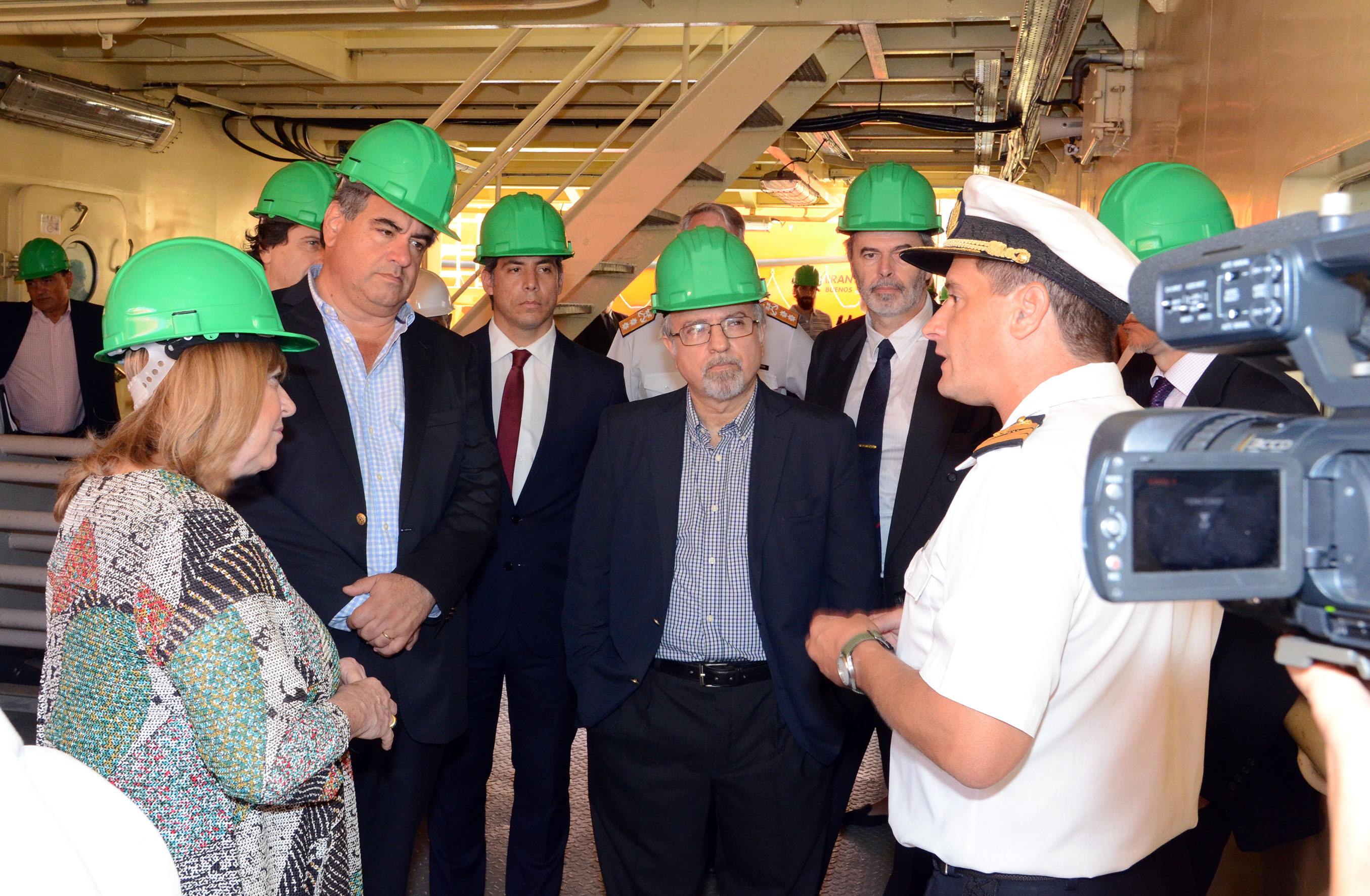 La canciller Susana Malcorra, acompañada por el Ministro de Defensa, Julio C. Martínez, visitó esta tarde el Rompehielos ARA Almirante Irízar, a fin de observar los avances en el proceso de reparación y modernización que viene realizando el Astillero Tandanor. Fotos: Roberto Daniel Garagiola