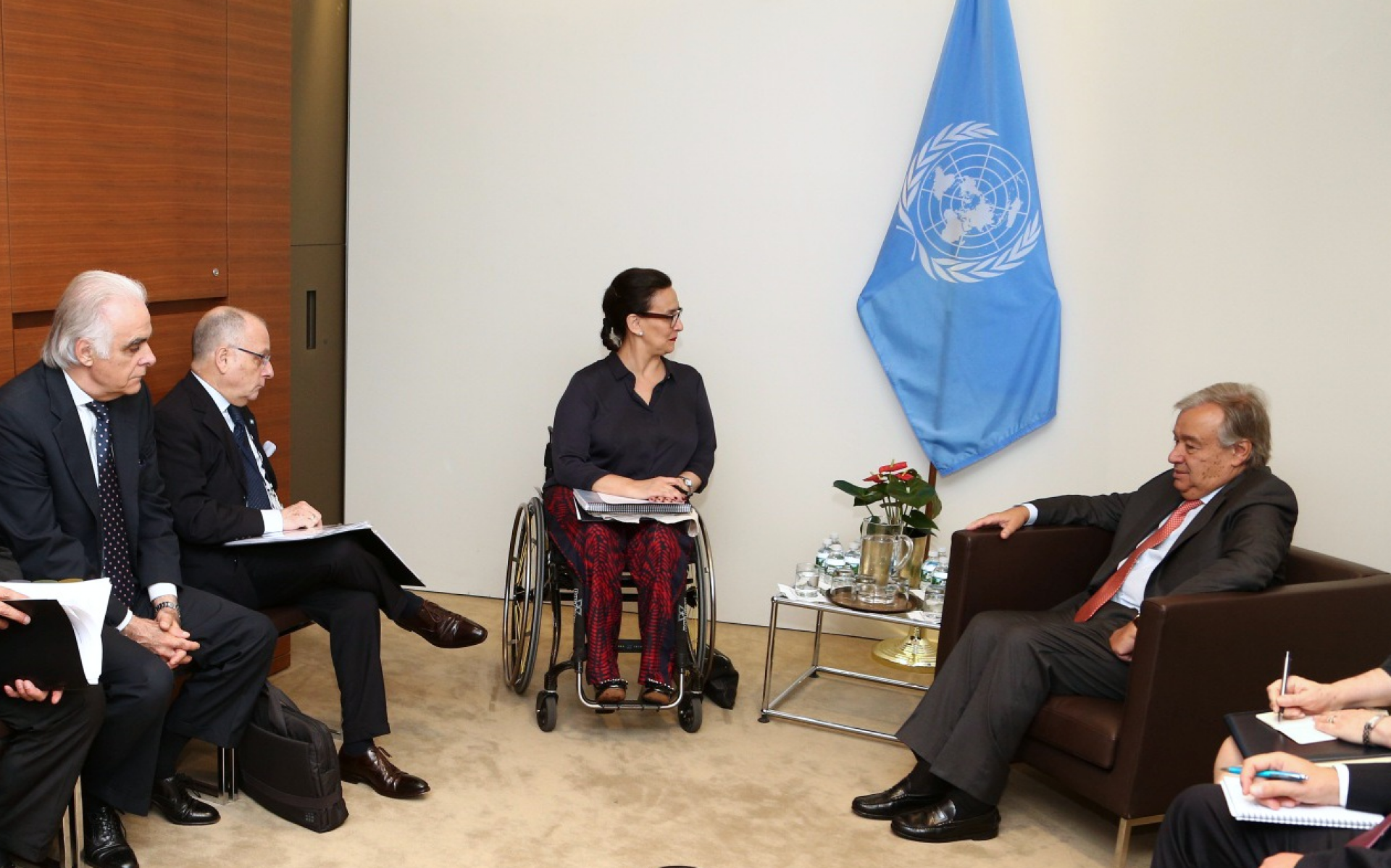 El Secretario General de la ONU, António Guterres, recibió en Nueva York a la Vicepresidenta argentina, Gabriela Michetti, en el marco de la 72° Asamblea General de las Naciones Unidas. Durante la reunión, de la que también participaron el canciller Jorge Faurie y el representante ante la ONU, Martín García Moritán, Guterres felicitó a la Argentina por el desarrollo nacional de la Agenda 2030, y agradeció la importante contribución de nuestro país en operaciones de paz.