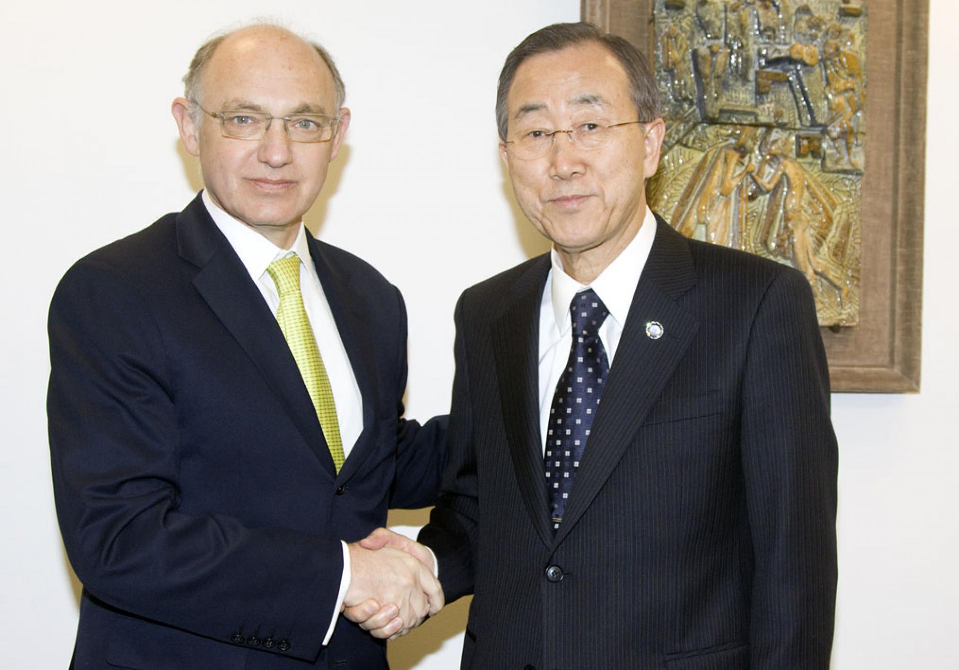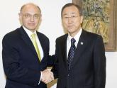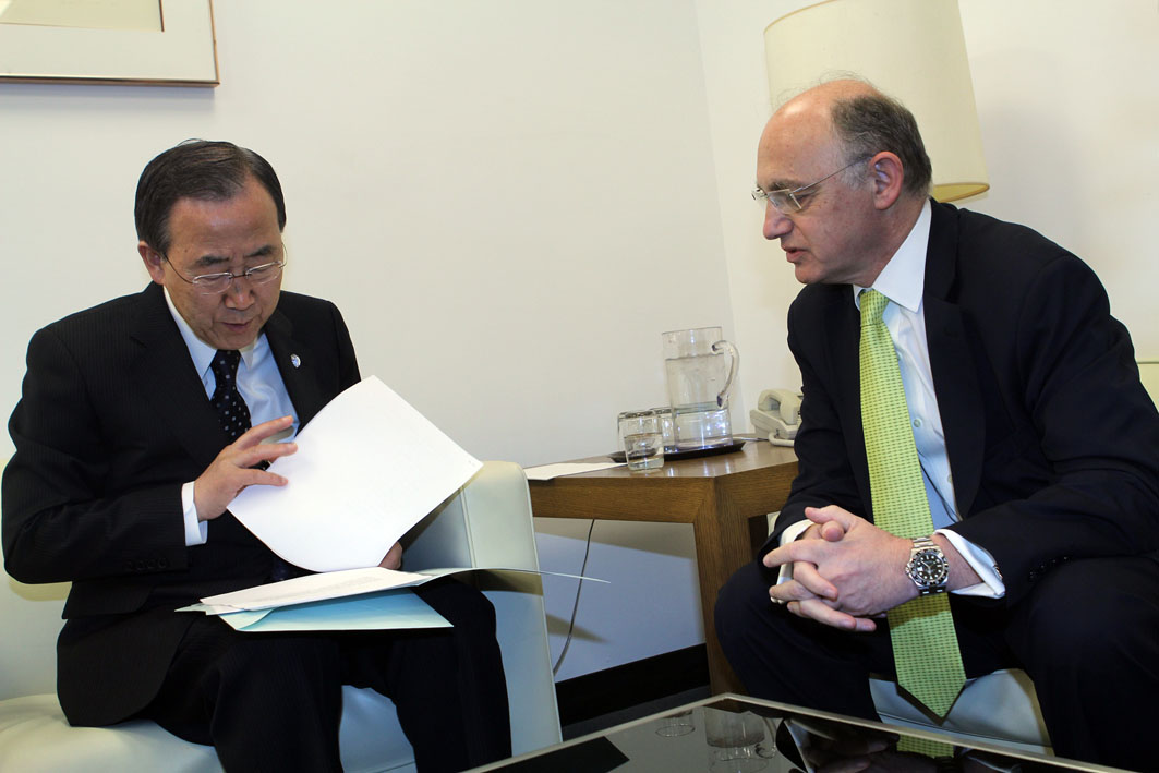 Naciones Unidas. Abril 6 de 2011. El Canciller Héctor Timerman fue recibido por el Secretario General de las Naciones Unidas, Ban Ki-moon. foto Prensa Cancilleria