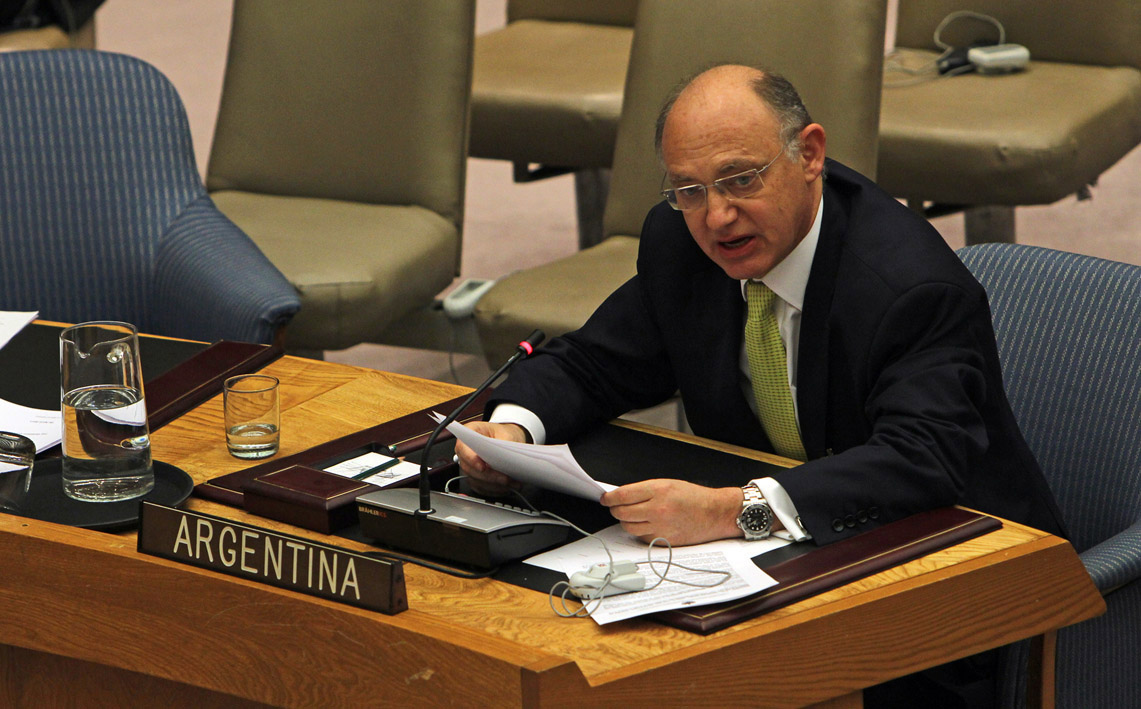 Naciones Unidas, Abril 6 de 2011.El Canciller Héctor Timerman en su discurso ante el Consejo de Seguridad de las Naciones Unidas, sobre Haití. foto Prensa Cancilleria