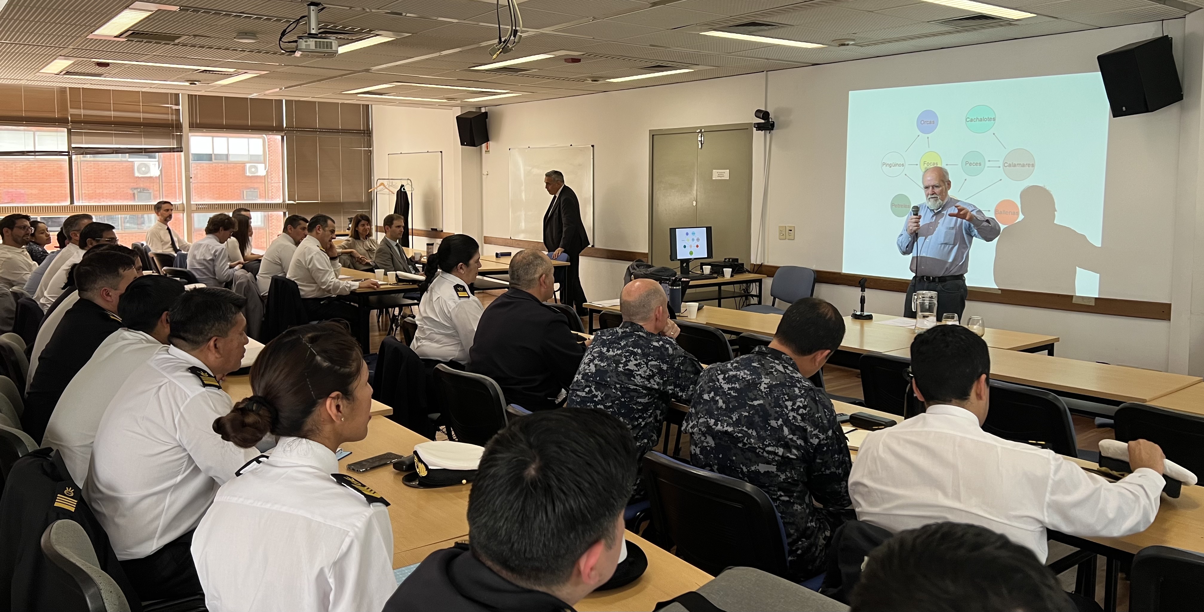 A lo largo de las dos jornadas, y con la participación en modalidad híbrida de 70 personas, se abordaron temas centrales como el Sistema del Tratado Antártico y la importancia de la CCRVMA, la evolución del Derecho Internacional de los océanos, el funcionamiento del sistema de inspecciones, observación científica y supervisión aérea de CCRVMA, las artes de pesca, la geolocalización, la logística aplicada y la experiencia de los últimos inspectores argentinos.
