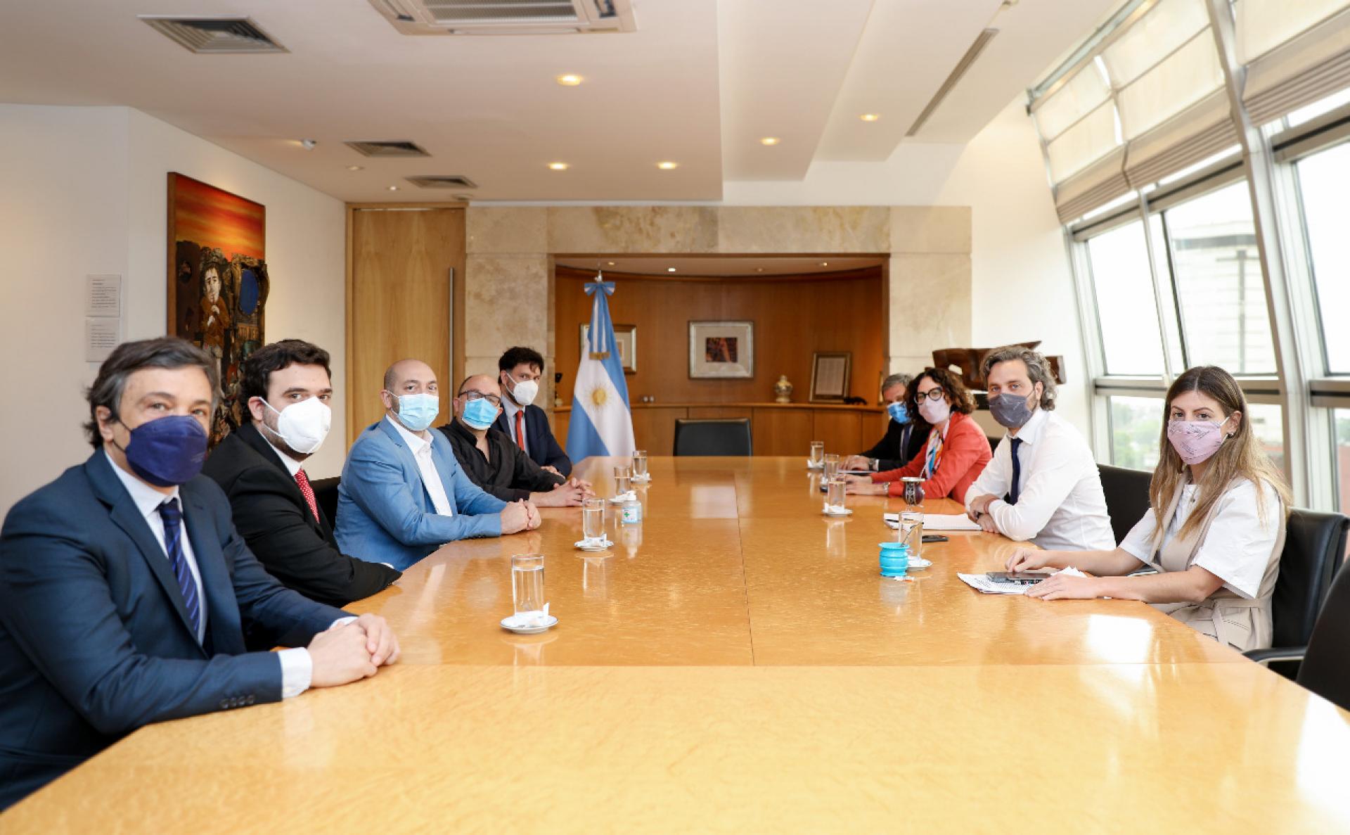 El canciller Santiago Cafiero, recibió esta mañana en su despacho a representantes de empresas argentinas de base tecnológica, conocidas como startups, en el marco del intenso trabajo que la Cancillería viene desarrollando junto a estas firmas para su capacitación, internacionalización y competencia en el mercado global.