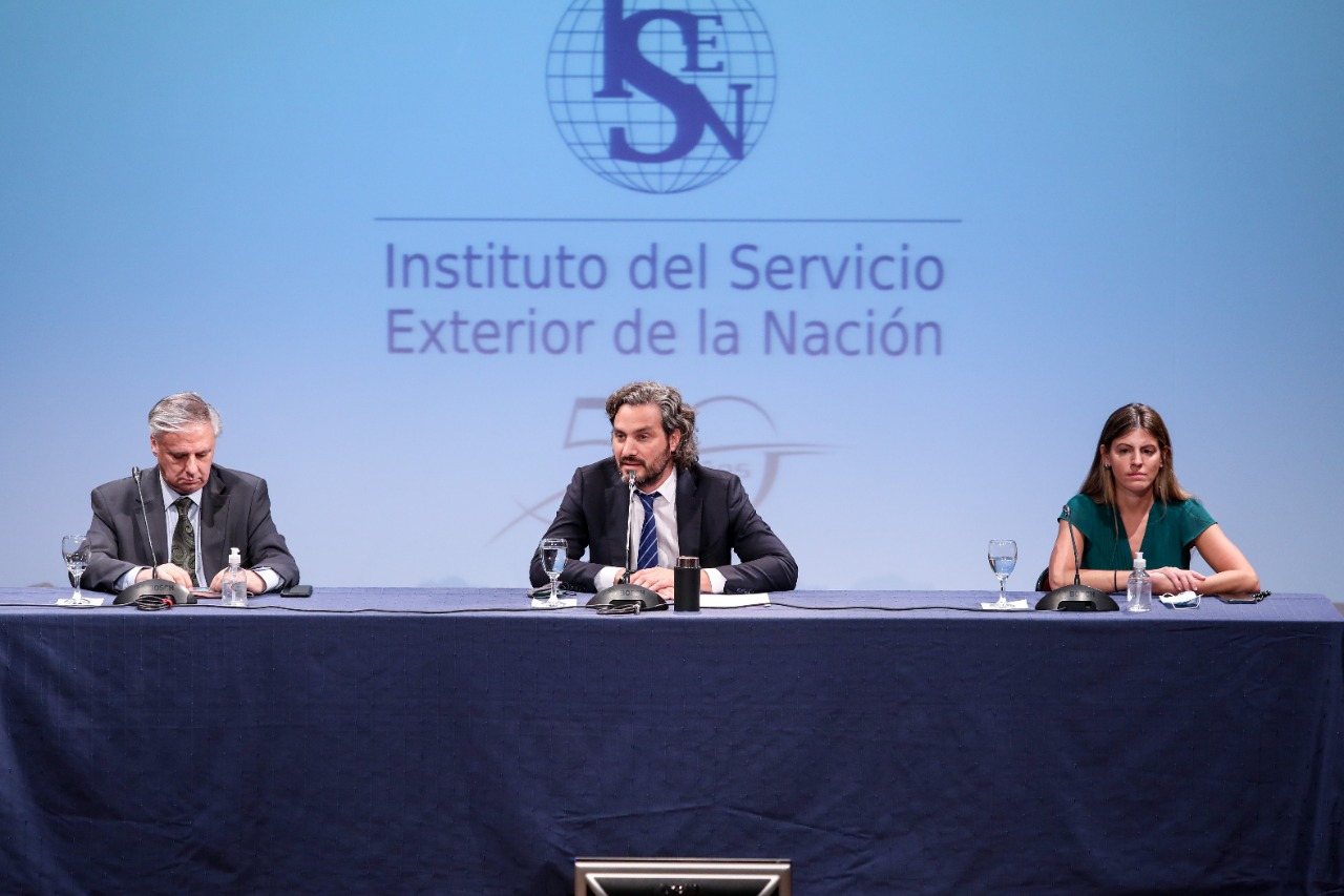 El canciller Santiago Cafiero encabezó hoy el acto de clausura del ciclo lectivo 2021 del Instituto del Servicio Exterior de la Nación (ISEN) y congratuló a los graduados de la Promoción 55 que se incorporarán como funcionarios y funcionarias diplomáticas de la República Argentina.