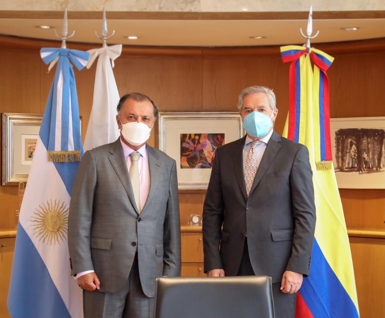El canciller Felipe Solá se reunió el 8 de febrero con el embajador de Colombia, Álvaro Pava Camelo, a fin de dialogar sobre la posibilidad de colocar diferentes productos en el mercado colombiano, como carnes porcina y ovina, vehículos, uvas y frutas secas. Abordaron además temas de cooperación entre ambos países.