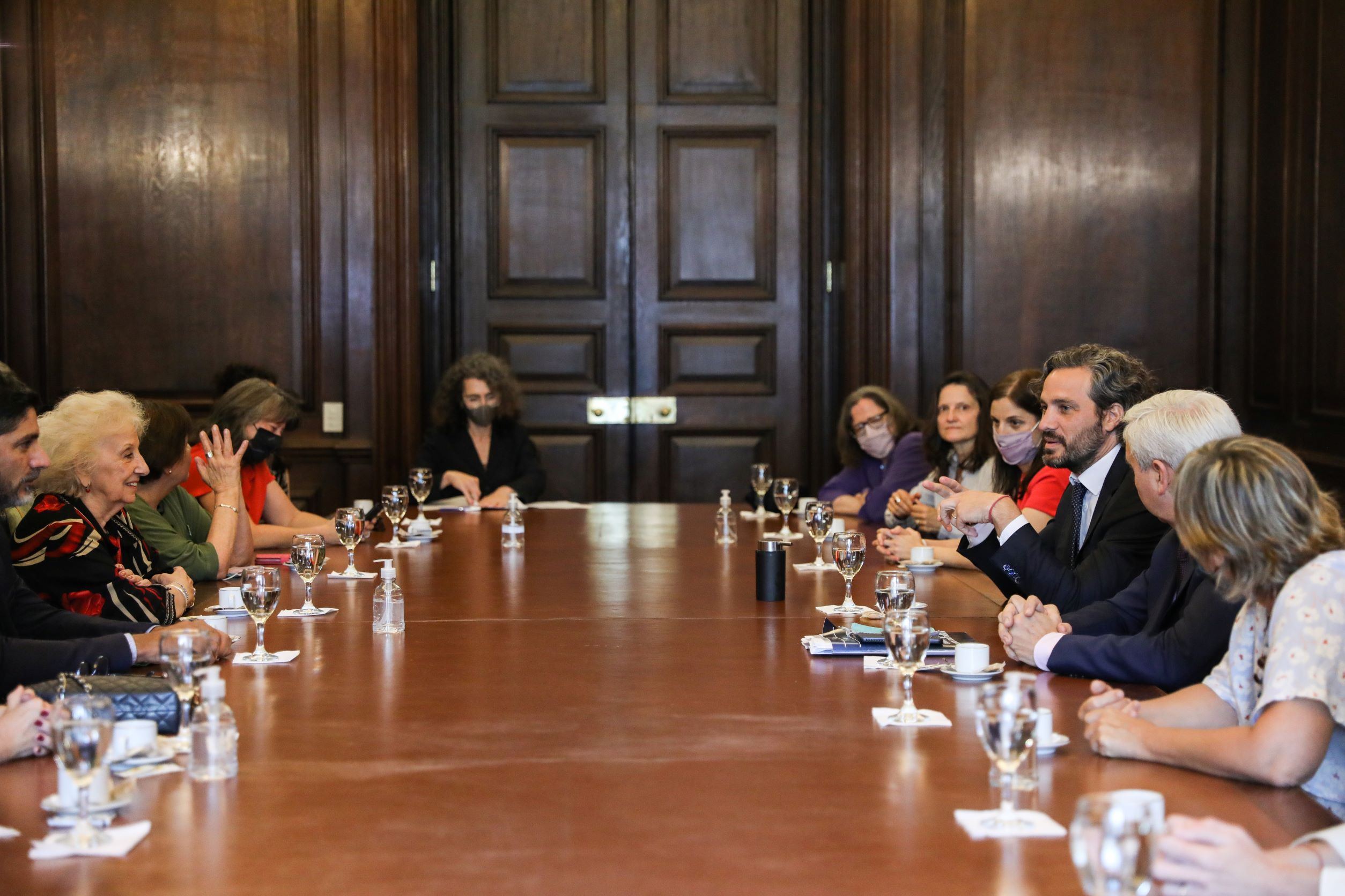 El canciller Santiago Cafiero encabezó está tarde un encuentro con los organismos de Derechos Humanos de nuestro país y el representante Permanente de la República Argentina ante los Organismos Internacionales en Ginebra, Federico Villegas Beltrán, para trabajar en la agenda que impulsará la Argentina cuando ejerza durante todo el año 2022 la presidencia del Consejo de Derechos Humanos de las Naciones Unidas, elegida por aclamación por los 47 países miembros por primera vez en la historia.