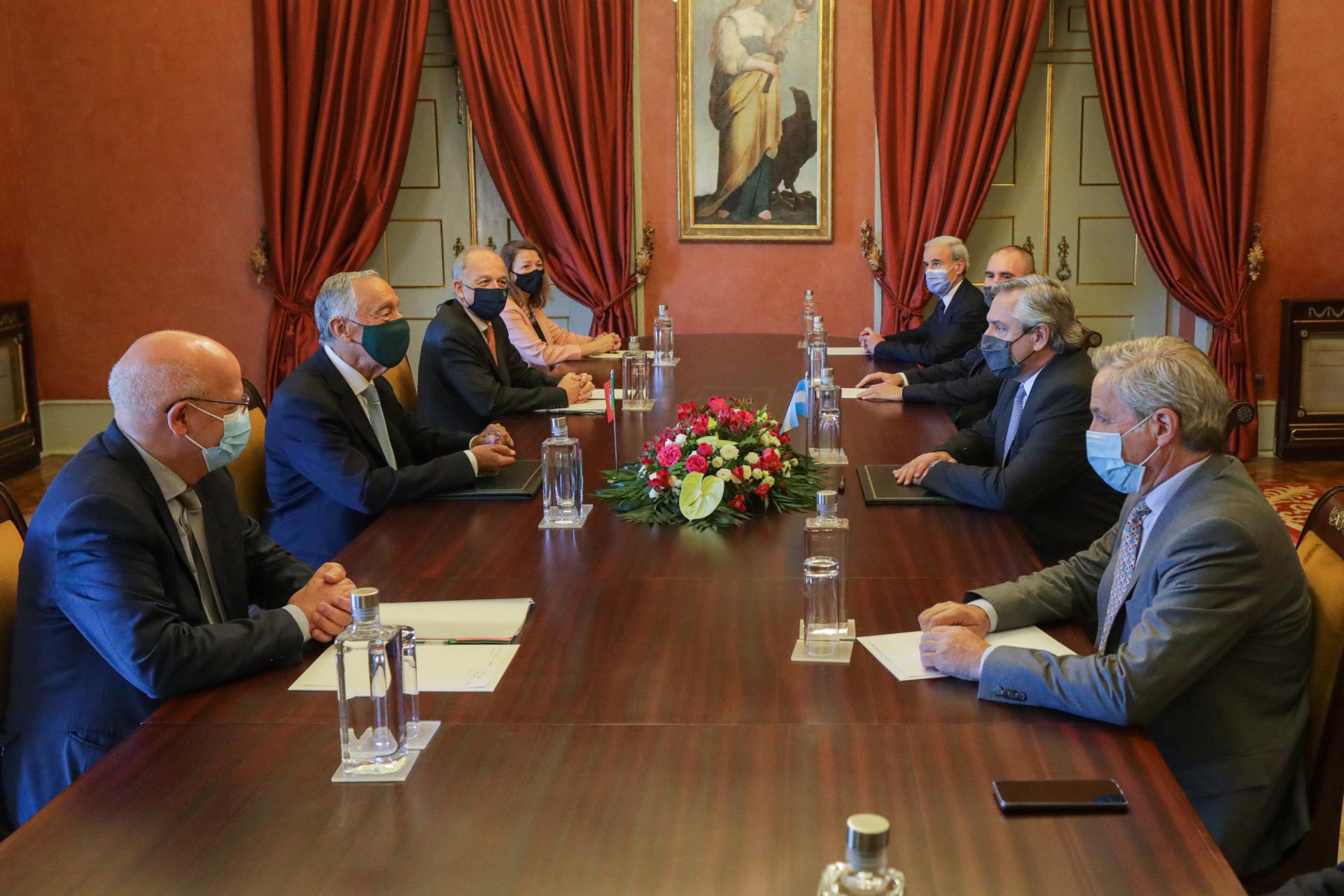 El presidente Alberto Fernández fue recibido esta tarde por su par de Portugal, Marcelo Rebelo de Sousa, en lo que fue la primera actividad oficial de la gira en la que el mandatario argentino visitará también España, Francia, Italia y Ciudad del Vaticano.
