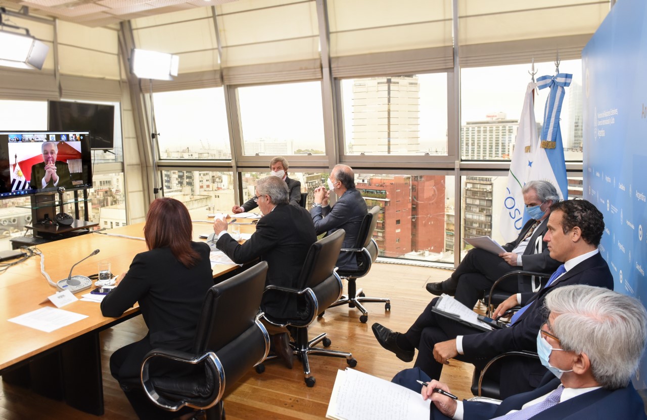 En su segunda intervención en la LVII Reunión del Consejo del Mercado Común (CMC) de los Estados Partes del Mercosur y Asociados, el canciller Felipe Solá destacó esta tarde los proyectos de infraestructura pendientes a nivel regional y la necesidad de priorizar “la mirada política y social del Mercosur en relación a otros procesos de integración subregionales”. Agradeció también “el tradicional apoyo a la cuestión Malvinas, que ha quedado reflejado en el comunicado conjunto que hemos aprobado”.