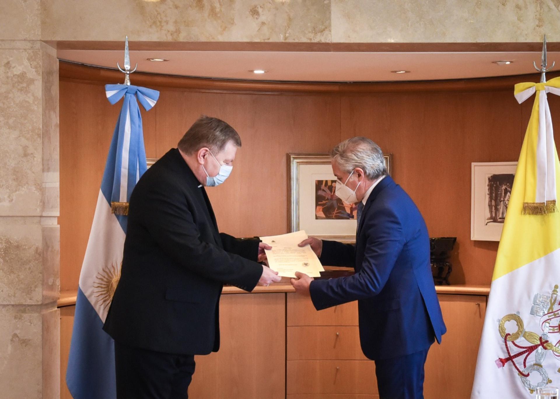 El ministro de Relaciones Exteriores, Comercio Internacional y Culto Felipe Solá recibió en audiencia al nuevo nuncio apostólico en Argentina, monseñor Miroslaw Adamczyk, quien le presentó copia de sus cartas credenciales. El obispo polaco fue designado por el Papa Francisco el 22 de febrero pero su llegada al país se demoró hasta el 6 de septiembre por la pandemia.