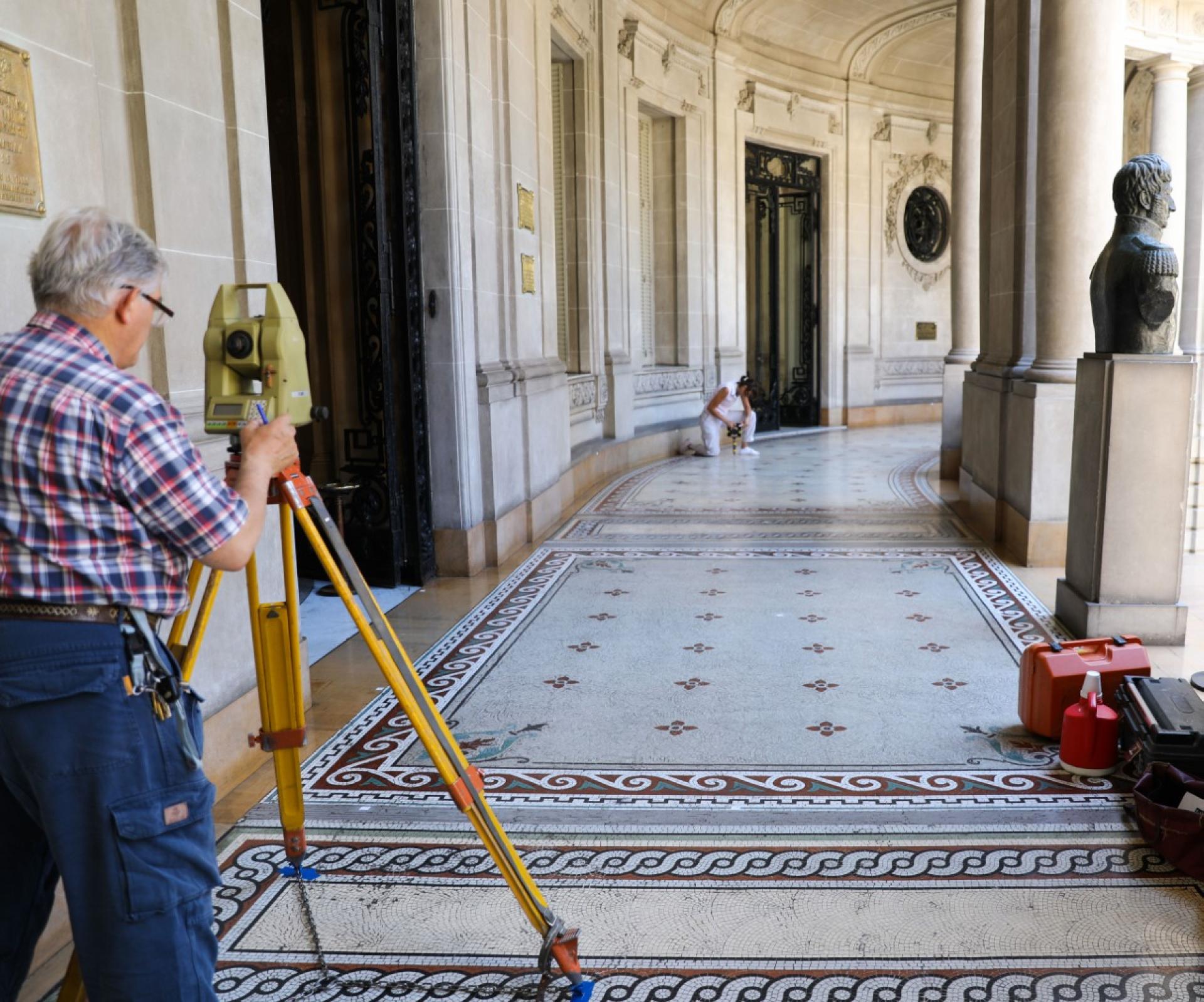 A través del trabajo conjunto de la Dirección General de Implementación y Gestión de Proyecto (DGPRO) con la Oficina de las Naciones Unidas de Servicios para Proyectos (UNOPS) se realizó el proceso de selección competitiva y la contratación de una firma especializada en restauración, que ya se encuentra realizando el análisis detallado del material de la Ronda de Honor y montando los obradores necesarios, mientras se terminan de aprobar los permisos de obra correspondientes.
