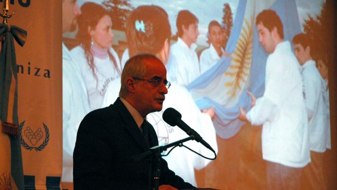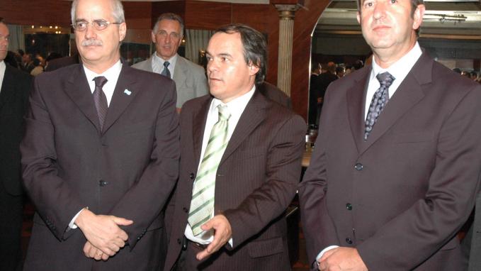 Baires, Dic 7 de 2006 El Canciller Jorge Taiana durante la celebración del dia del voluntario junto al Jefe de Gabinete Alberto Fernandez y el Director de Cascos Blancos Gabriel Fuks