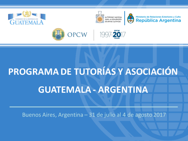 El Programa de Tutorías y Asociación con Guatemala se enmarca en una serie de actividades que la Argentina lleva adelante este año para conmemorar el aniversario de la OPAQ, que el 29 de abril de 2017 celebró veinte años de existencia. En 2013 la organización fue galardonada con el Premio Nobel de la Paz por su contribución al desarme mundial.