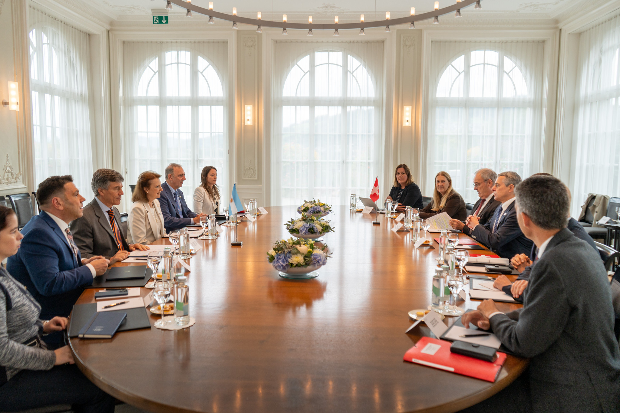 Later, the Foreign Minister held a meeting with the head of the Federal Department of Foreign Affairs, Ignazio Cassis, and the head of the Federal Department of Economic Affairs, Education and Research, Guy Palmerin, with whom she discussed the most important issues on the common agenda, as well as current regional and global issues, including the pressing situations in the Middle East (Mondino explained that Argentina designated Hamas a terrorist organization), Ukraine, Venezuela and Africa.