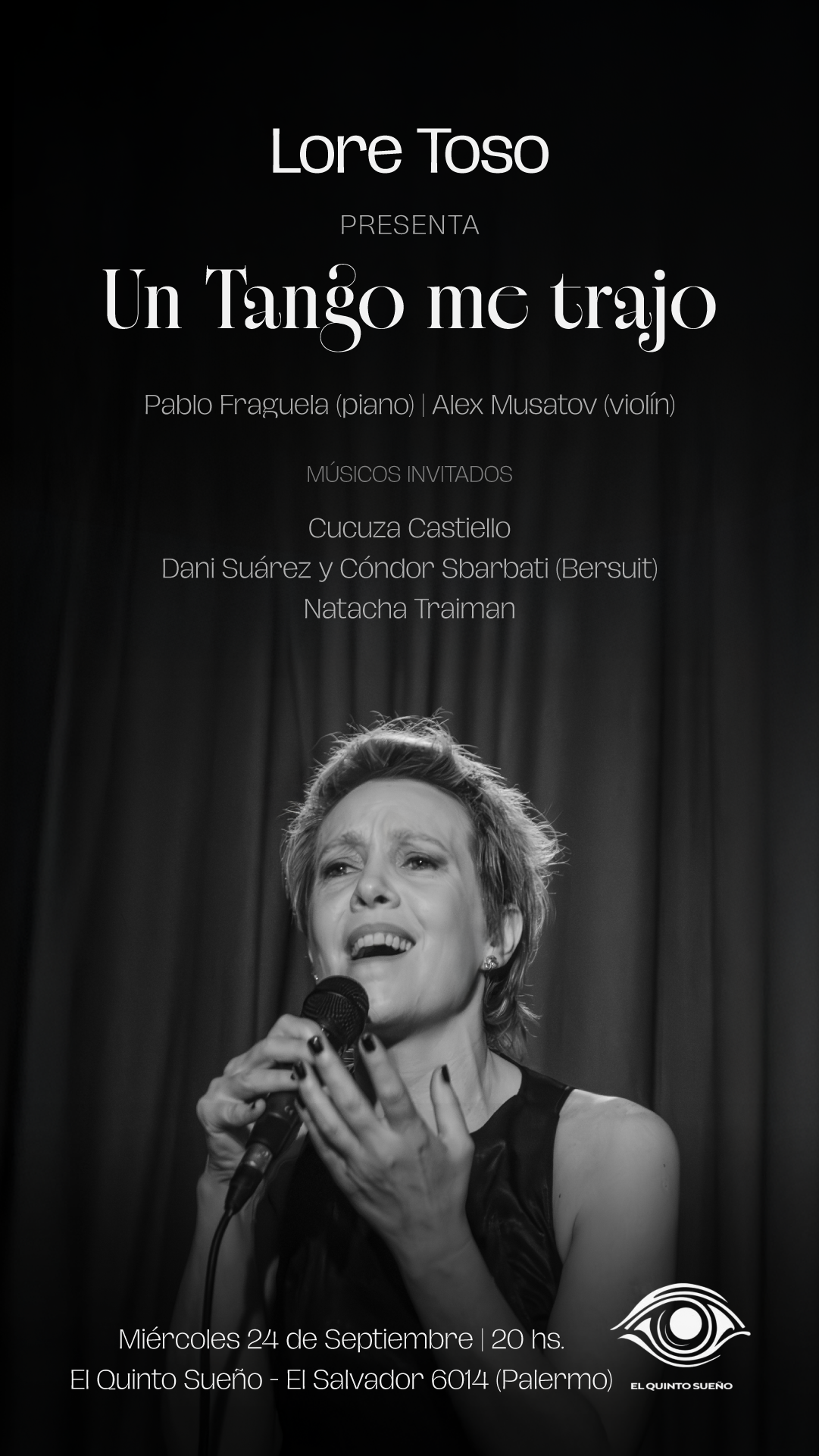 With the heart of Argentine tango and a voice that has captivated the media, Lore invites the audience to an experience that intertwines the melancholy and passion of tango with her life experiences. Accompanied by a talented pianist and an outstanding violinist, her show is not just a concert, but a reflection of her dual professional and personal persona—the same that has allowed her to connect with audiences on radio, television, and stage.