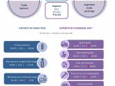 - The imports of crude petroleum oils (USD 1.23 billion), wheat (USD 1.19 billion, mainly to Brazil and Indonesia), soybean flour and pellets (USD 1.17 billion) and soybeans (USD 1.10 billion) can be highlighted; while the largest falls occurred in vehicles for the transport of persons (‑USD 210 million), barley grains (‑USD 169 million) and vehicles for the transport of goods (‑USD 150 million).
