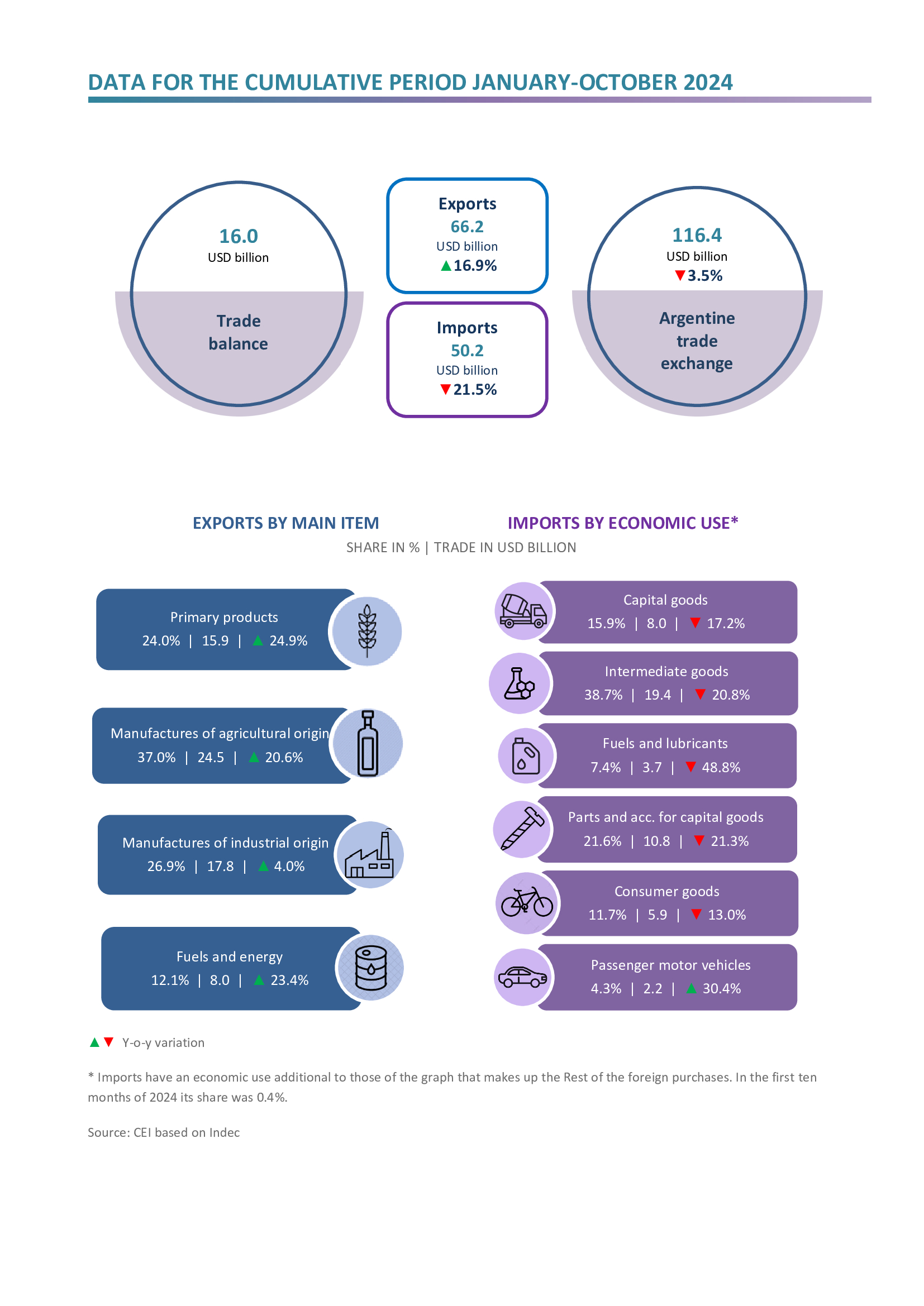 - Consequently, the trade balance reached a surplus of USD 16.0 billion, when in the first ten months of 2023 a deficit of USD 7.4 billion had been recorded.