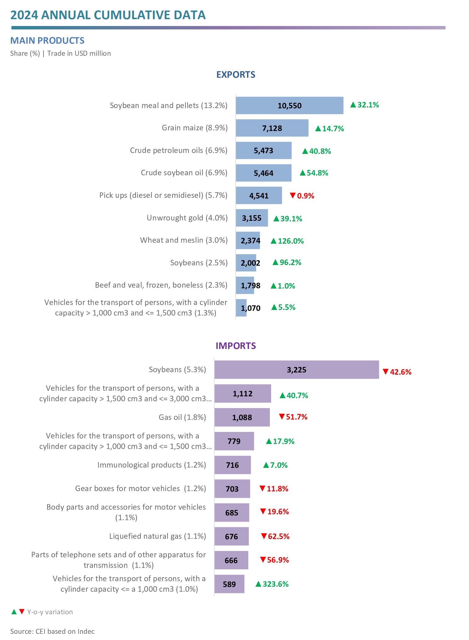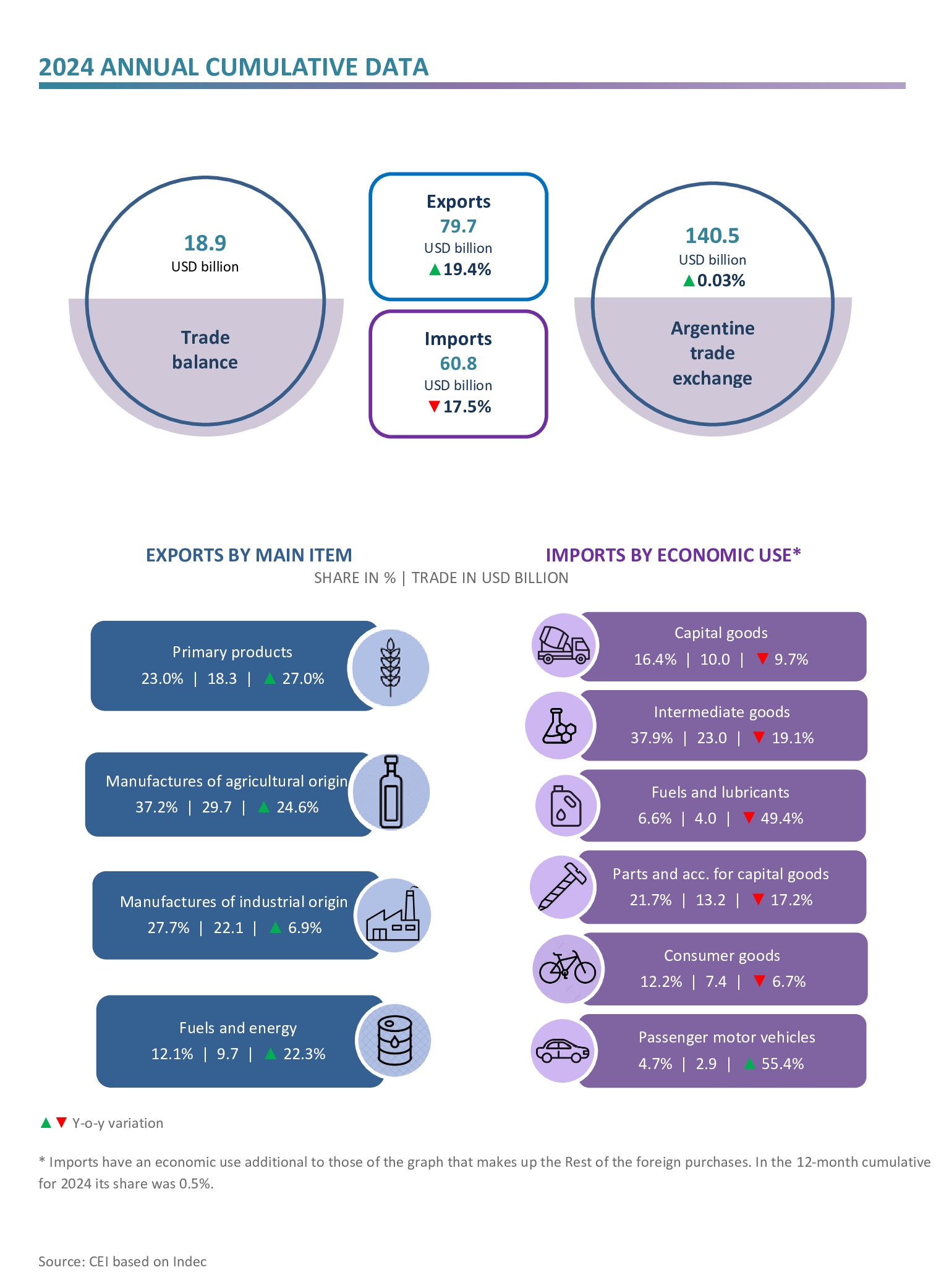 - As a result, the trade balance reached a surplus of USD 18.9 billion, when in 2023 a USD 6.9 billion deficit had been recorded.