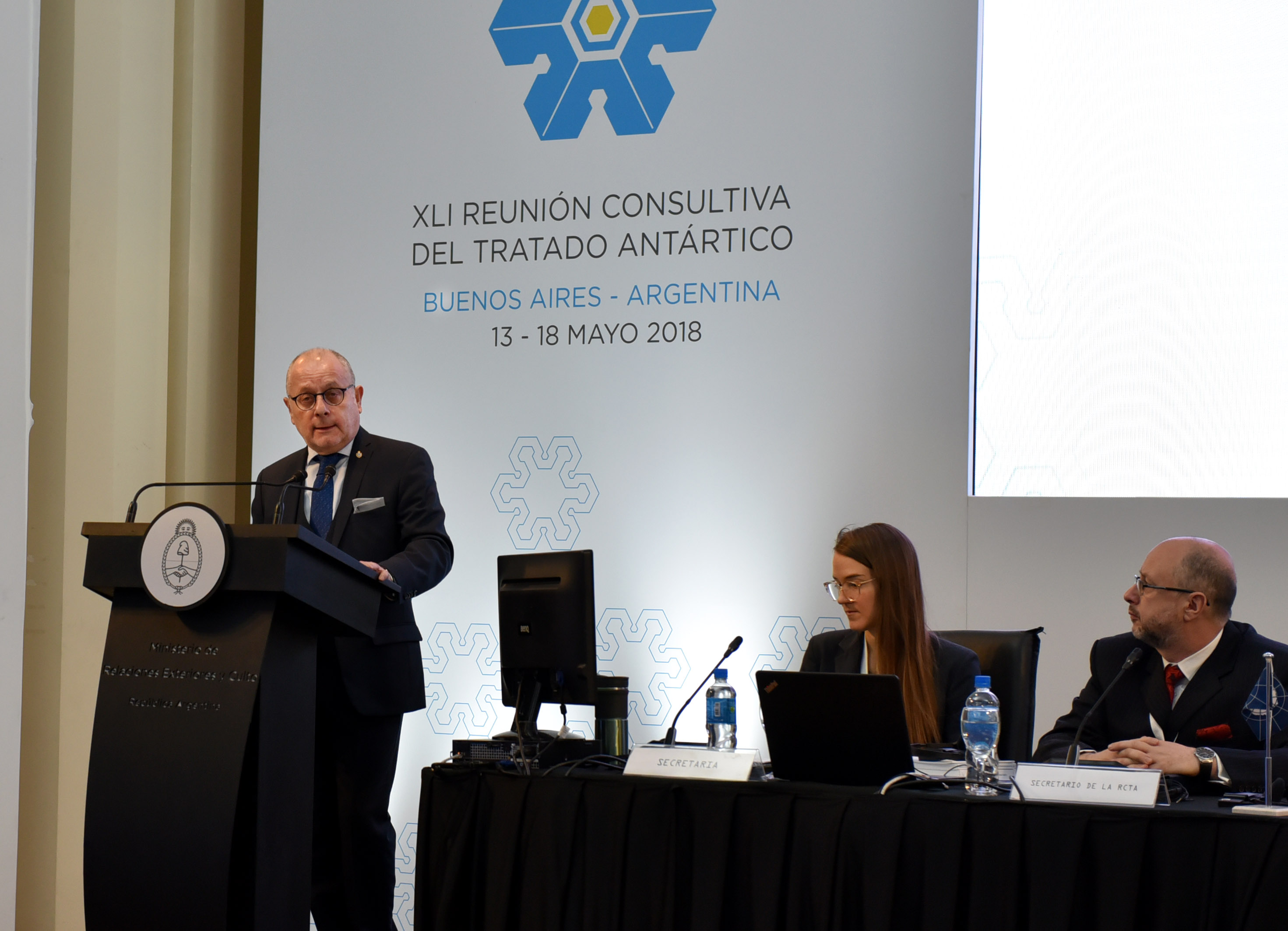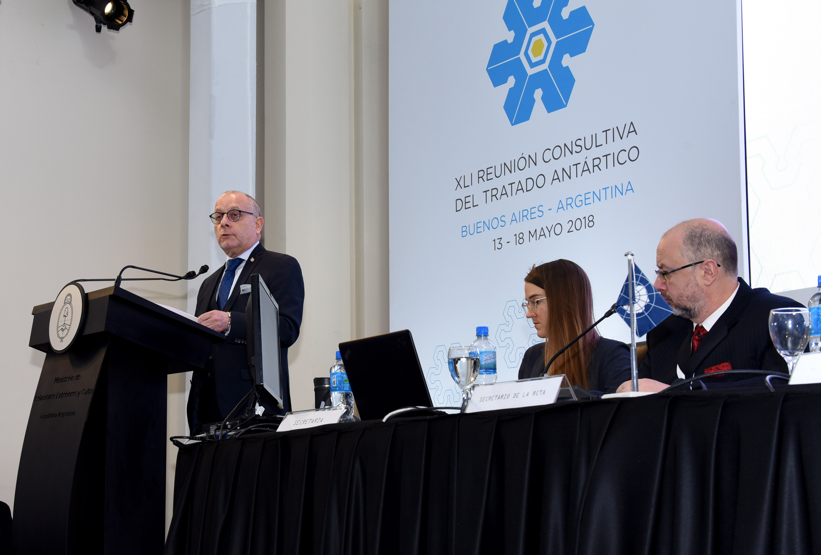 Foreign Minister Jorge Faurie today encouraged "the strengthening of scientific activity in Antarctica within a framework of peace and cooperation, with a view to preserving its environment, especially for future generations," as he opened the 41st Antarctic Treaty Consultative Meeting today at the Palacio San Martín.