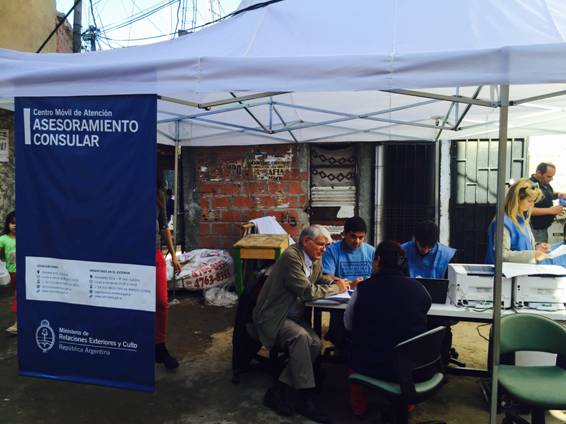 La Cancillería argentina informa que ya integra activamente las Jornadas Interministeriales de Atención a la Ciudadanía, para lo cual puso en marcha el CENTRO MÓVIL DE ASUNTOS CONSULARES, donde personal y autoridades de la Cancillería brindaron asistencia y asesoramiento gratuito a sus residentes. Con el objetivo de poner a disposición de la población los recursos del Estado, este Centro Móvil permitió acercar a la comunidad algunos de los servicios de atención al público que se ofrecen a diario dentro del Ministerio, constituyendo la primera experiencia en el país de trabajo puertas afuera de la Cancillería. La semana pasada el Centro Móvil trabajó en el Barrio Fraga, y este fin de semana lo hará en los Barrios Rodrigo Bueno y Ramón Carrillo. En este contexto, alrededor de 100 familias fueron atendidas facilitándoles información accesible y actualizada sobre aquellos trámites consulares que resultan más frecuentes o de mayor utilidad en relación a documentos extranjeros para utilizar en Argentina, y también sobre documentos argentinos para su uso en el extranjero. También se asesoró acerca de distintas problemáticas migratorias. Los temas de mayor consulta fueron: vigencia de DNI para extranjeros, tramitación de renovación de DNI, tramitación de residencia, opciones de nacionalidad (naturalización), legalización de documentos para regularización migratoria, tramitación de homologación de títulos y reconocimiento de estudios cursados, carnet de conducir, trámites de venias o autorizaciones de viaje. Es de destacar que este abordaje territorial permitió a la Cancillería escuchar, orientar y dar respuesta a las inquietudes y necesidades de quienes se acercaron al Centro Móvil, siempre con el objetivo de fortalecer un modelo de gestión pública integral en el territorio, que promueva el ejercicio de los derechos y garantías de la comunidad. Esta experiencia, que fomentó el acceso igualitario a todos los habitantes, es un paso importante del acercamiento de la Cancillería argentina a la población y constituye el inicio de una nueva modalidad de gestión.