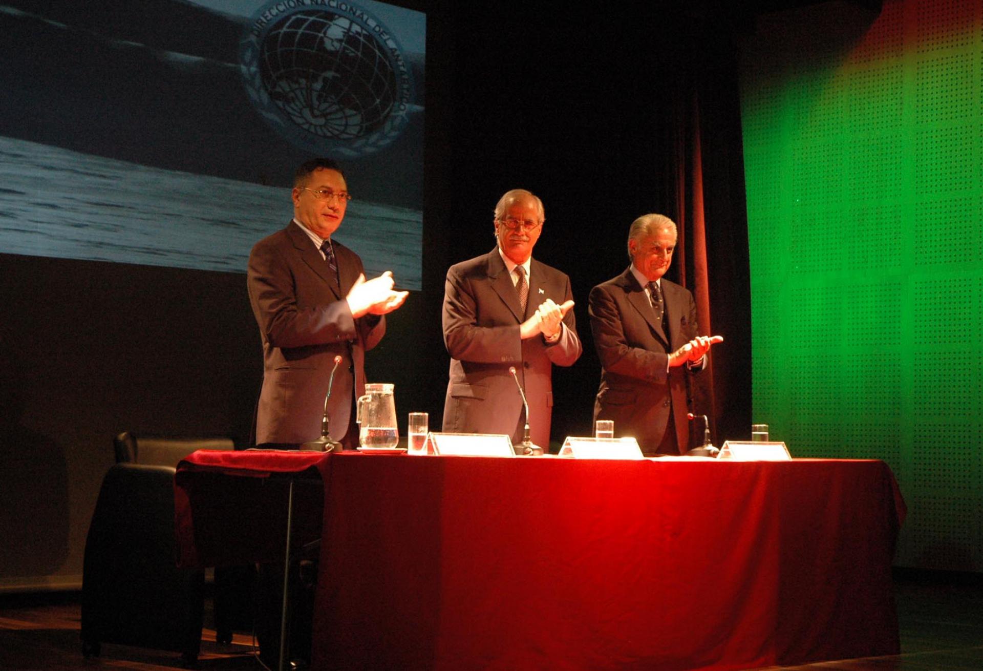 Baires Febrero 22 de 2008 El Canciller Jorge Taiana, el Vicecanciller Roberto García Moritán y el Secretario de Asuntos Intitucionales de la Defensa, Lic. Corti, durante el recordatorio a los 104 años de presencia ininterrumpida Argentina en la Antártida.