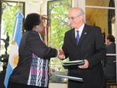 Buenos Aires, Diciembre 3 de 2008. El Canciller Jorge Taiana recibió en el Palacio San Martín a su par de Sudafrica Nkosazana Clarice Dlamini Zuma, con quién firmó tratados de interés bilateral. foto Roberto Daniel Garagiola