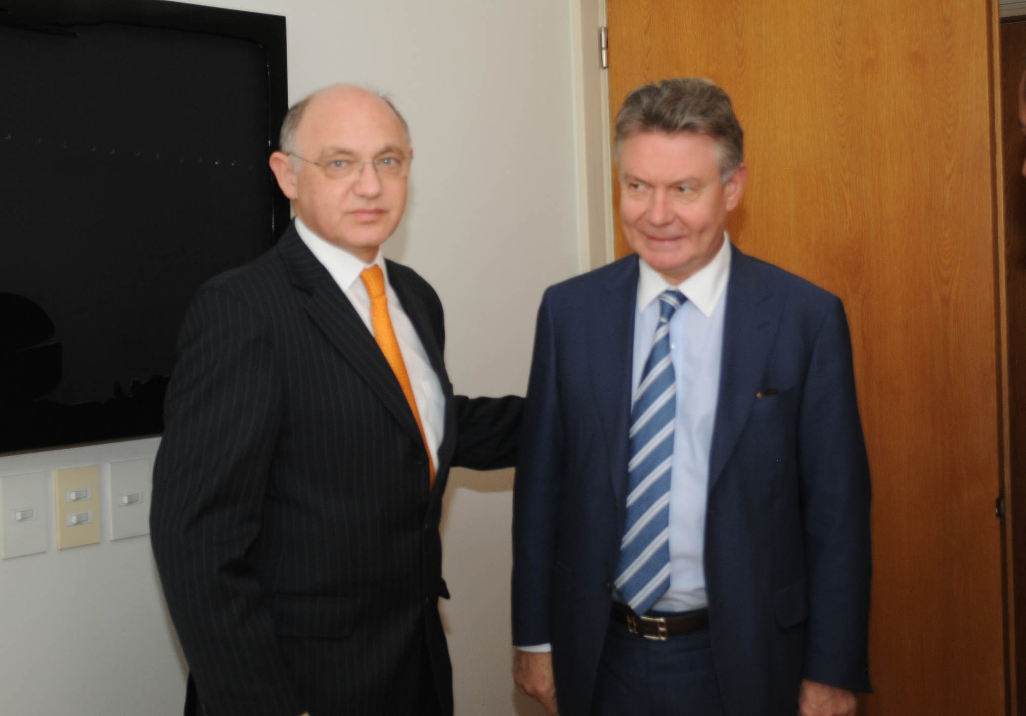 Buenos Aires, Septiembre 15 de 2010. El Canciller Héctor Timerman recibió en su despacho al Comisario de Comercio de la Unión Europea, Karel De Gucht. Ambos expresaron satisfacción por la reanudación de las negociaciones por el "Acuerdo de Asociación Birr