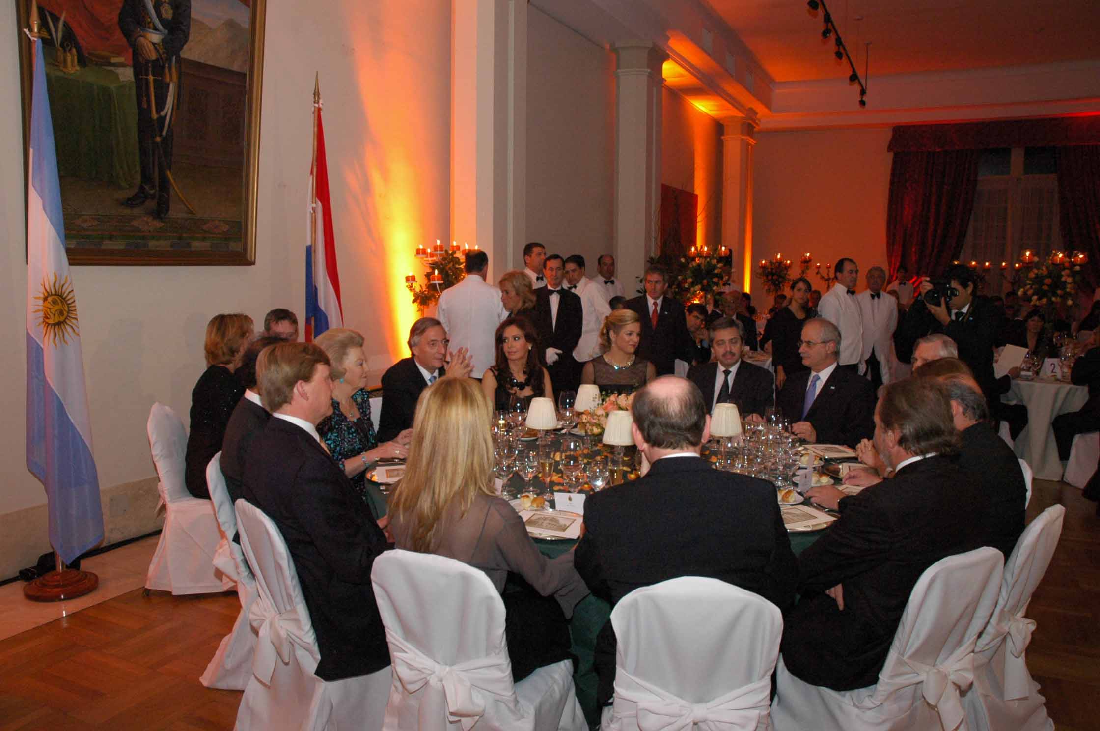 Canciller Jorge Taiana junto al Presidente Néstor Kirchner durante la cena ofrecida a la Reina de Países Bajos