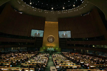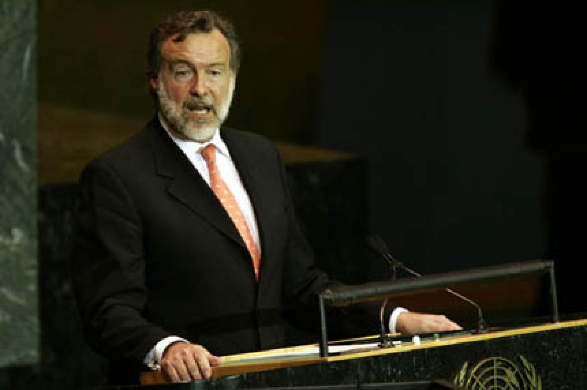 El Canciller Rafael Bielsa durante su intervención en la O.N.U.