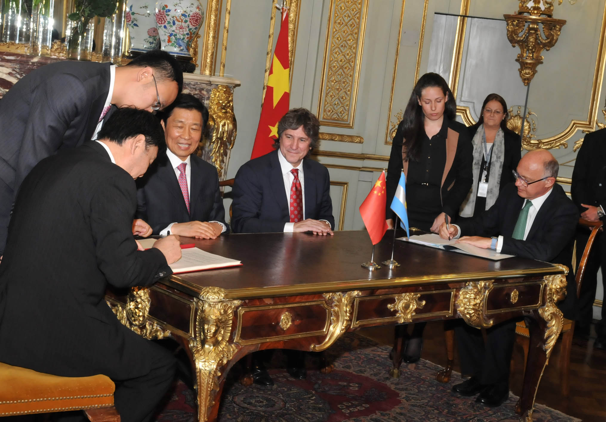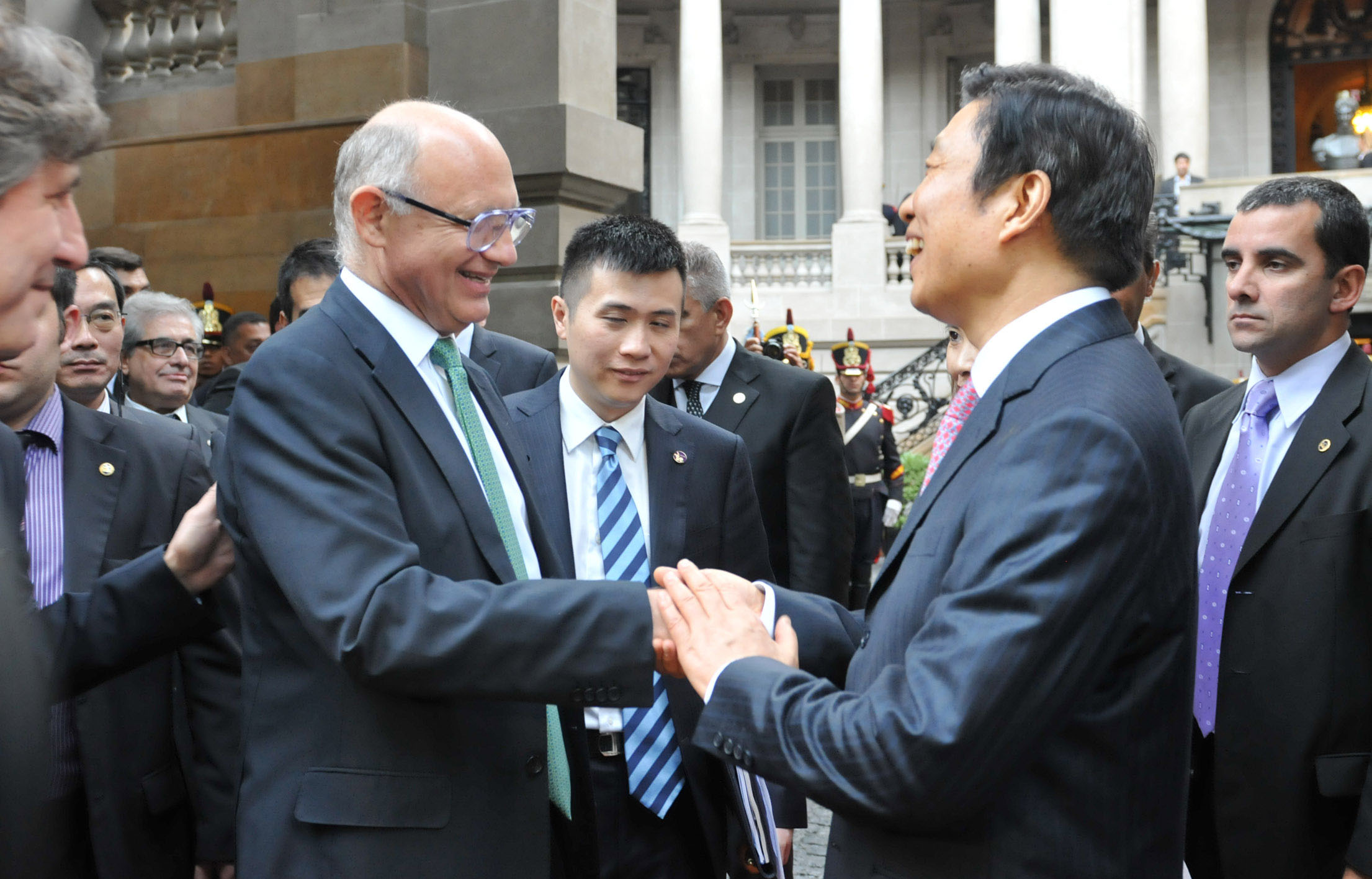Buenos Aires, Mayo 10 de 2013. El Vicepresidente de la República Popular China, Li Yuanchao, fue recibido por el Vicepresidente de la Nación, Amado Boudou, el titular de la Cámara de Diputados, Julián Domínguez, y el Canciller Héctor Timerman para un almuerzo en su honor en el Palacio San Martín. Se firmaron varios convenios de interés bilateral. foto Roberto Daniel Garagiola