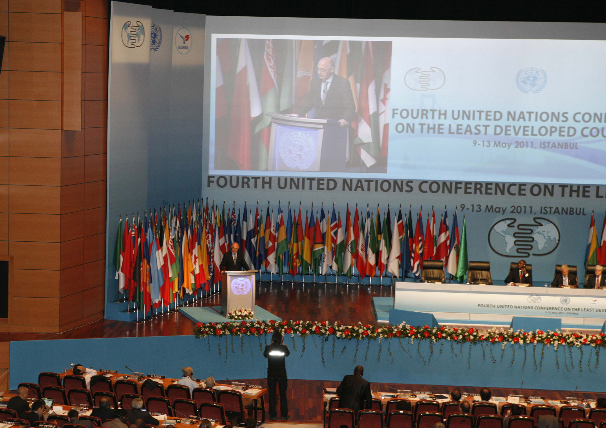Estambul, Turquía. Mayo 10 de 2011. El Canciller Héctor Timerman durante su presentación en la IV Conferencia de las Naciones Unidas sobre Países Menos Adelantados